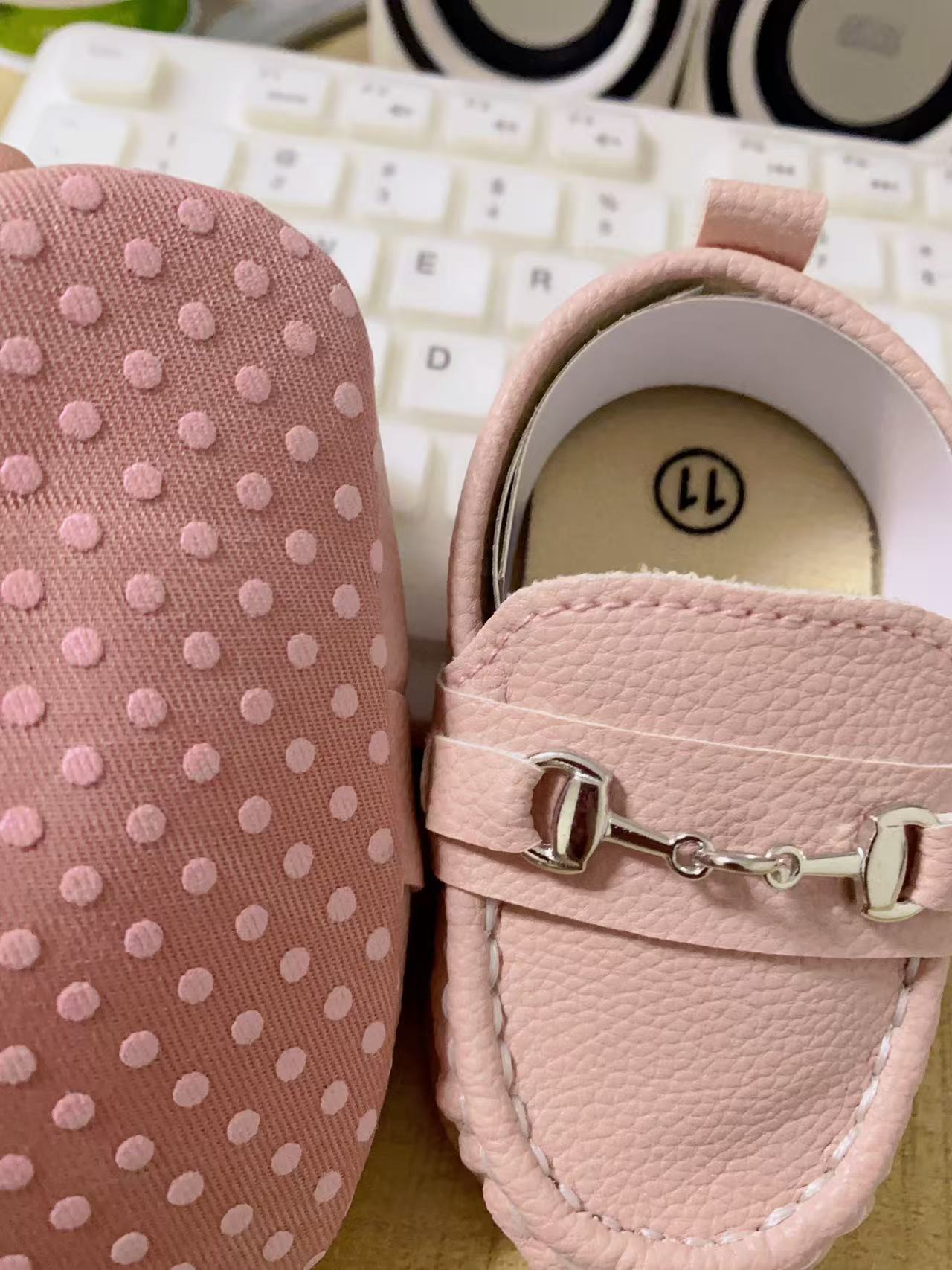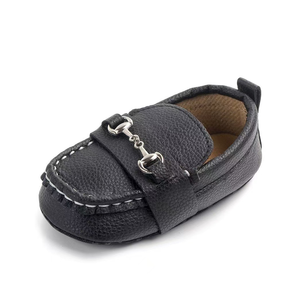 가을 겨울 유아용 부드러운 밑창 미끄럼 방지 내구성 패션 만능 실내외 캔디슈즈 PU 신발 상단 철제 버클 장식 트렌디스토어 가기