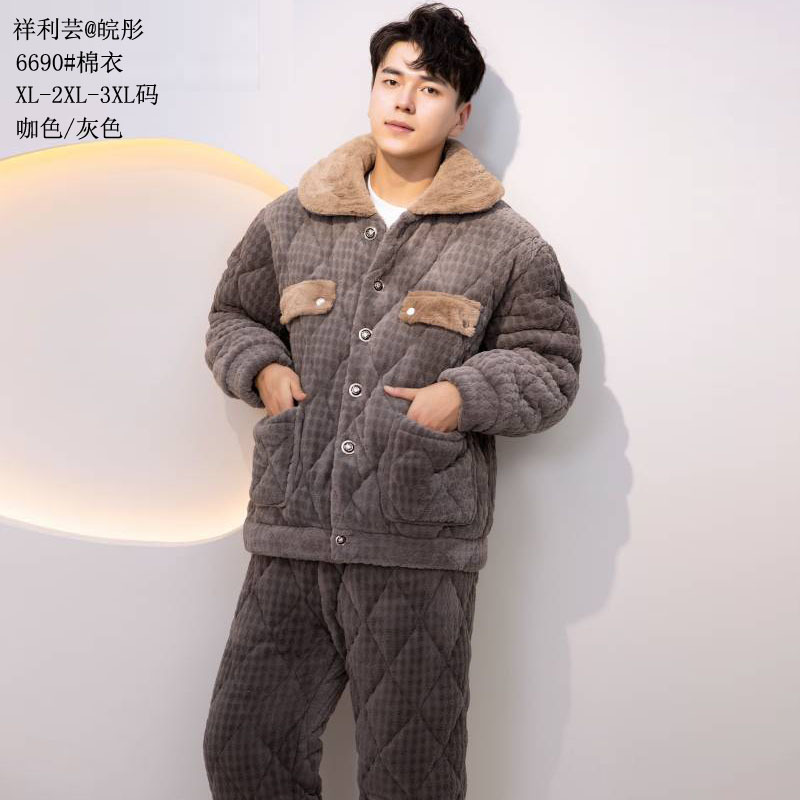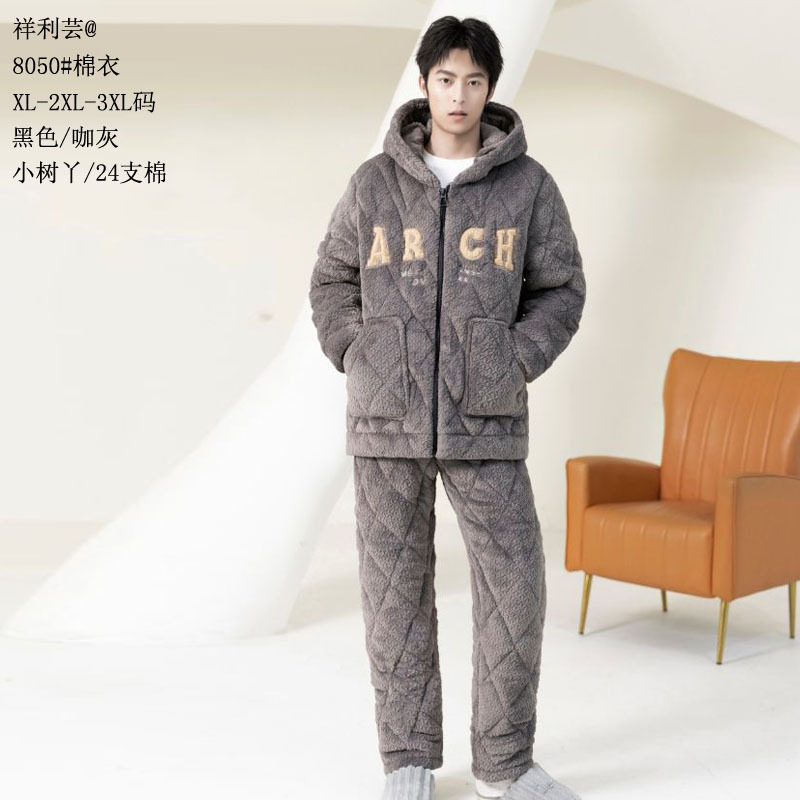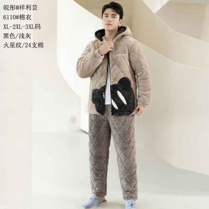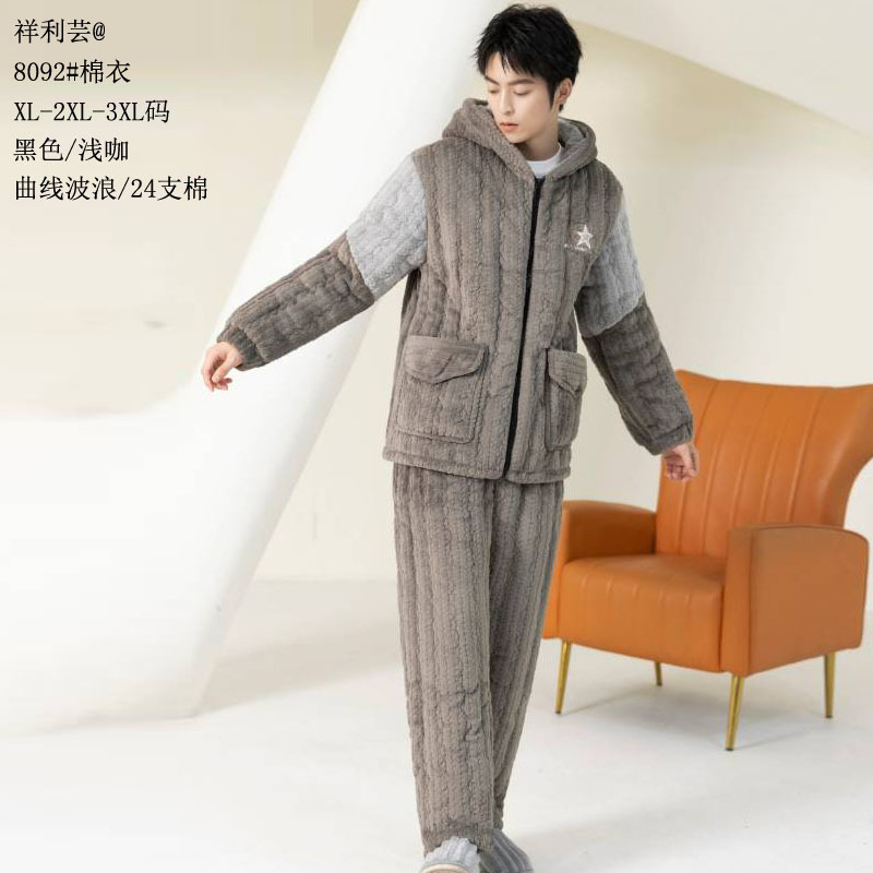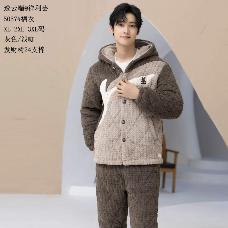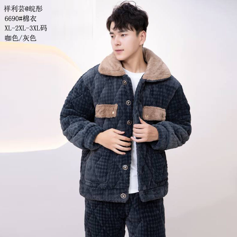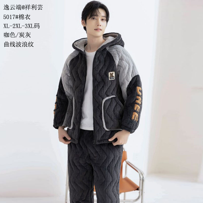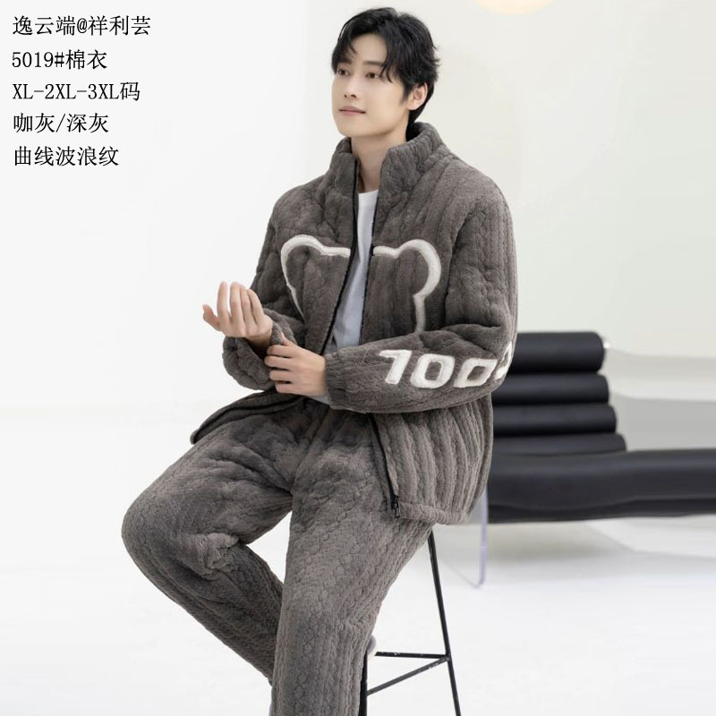 샹리윈 남성용 면옷 케이크 벨벳 지퍼 2025 신상 잠옷 밀크 벨벳 따뜻하고 패셔너블한 외출복 홈웨어스토어 가기