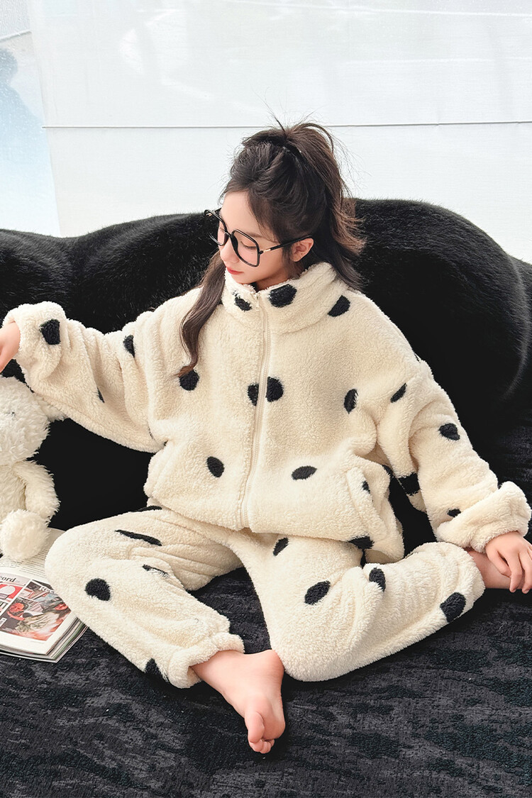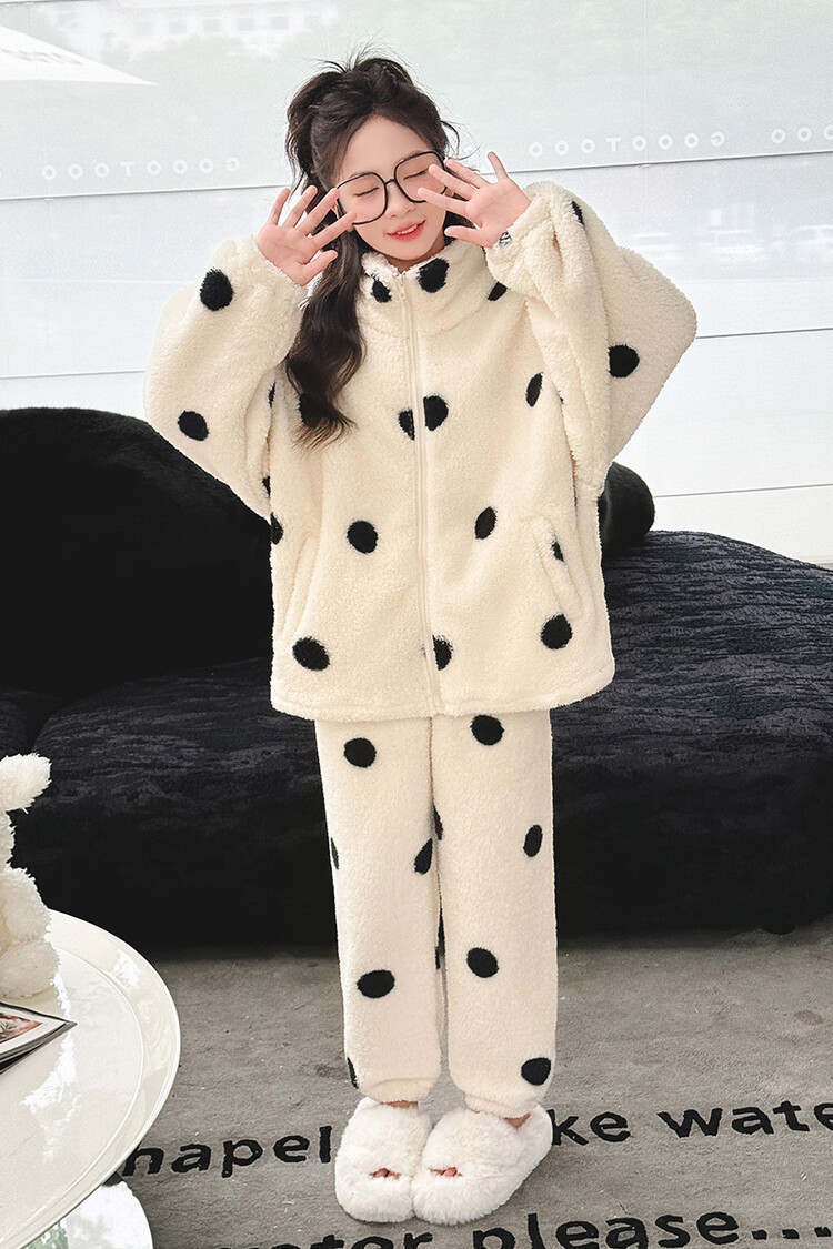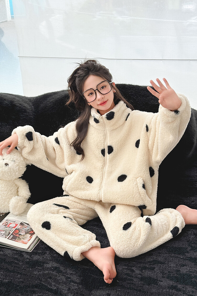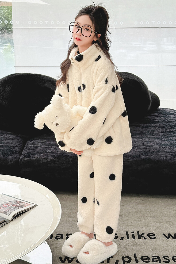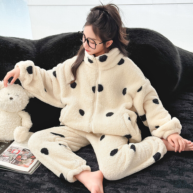 부모-어린이 가정 옷 여아 큰 어린이 서양식 웨이브 포인트 잠옷 세트 가을과 겨울 두꺼운 한국식 외부 착용 따뜻한 트렌디스토어 가기