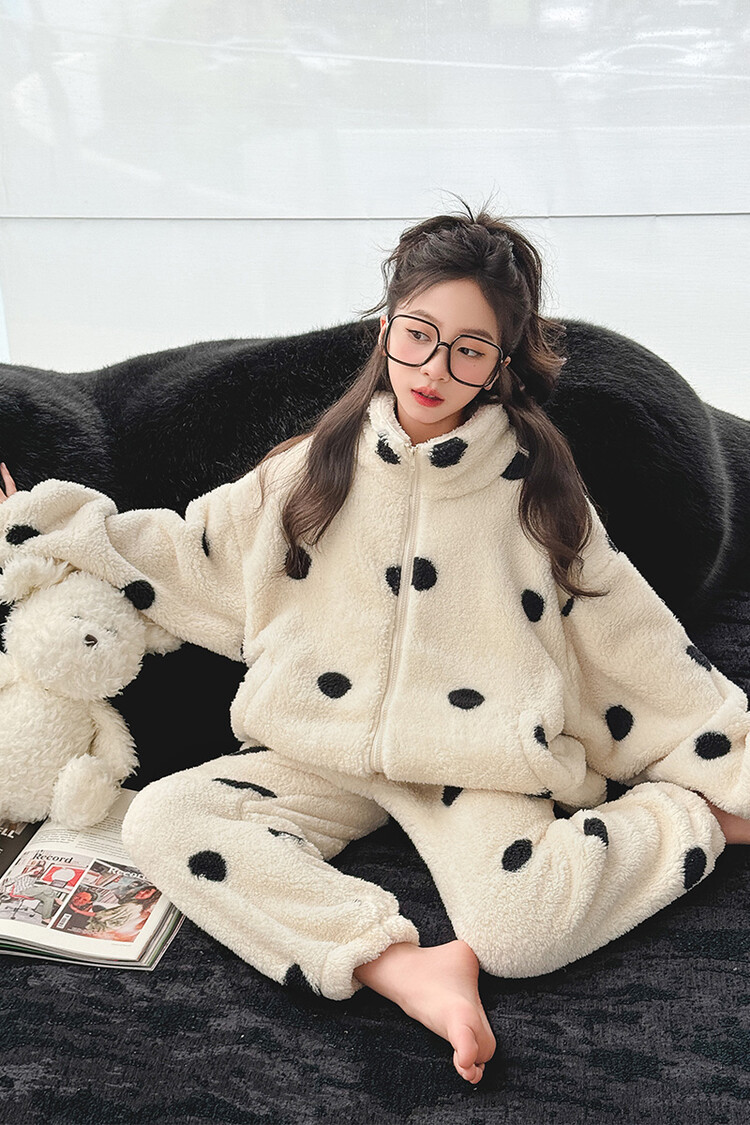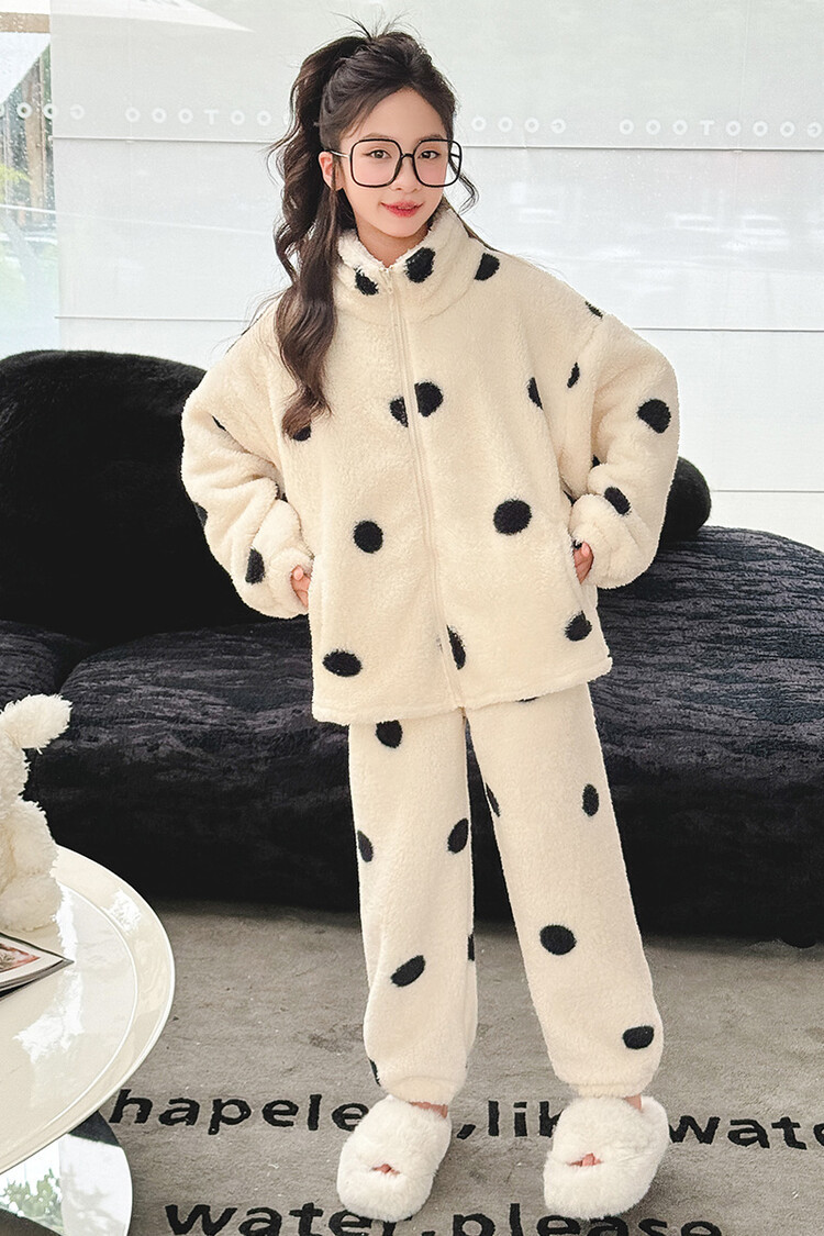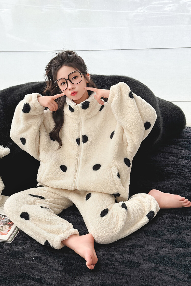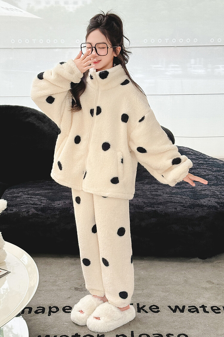 부모-어린이 가정 옷 여아 큰 어린이 서양식 웨이브 포인트 잠옷 세트 가을과 겨울 두꺼운 한국식 외부 착용 따뜻한 트렌디스토어 가기