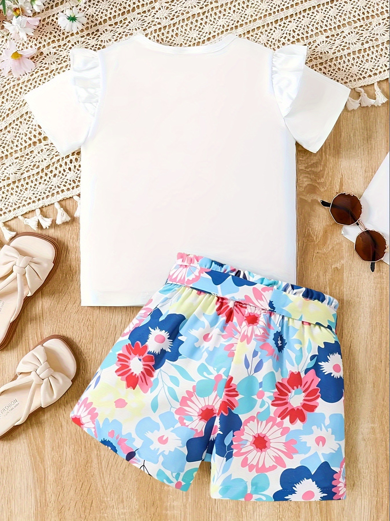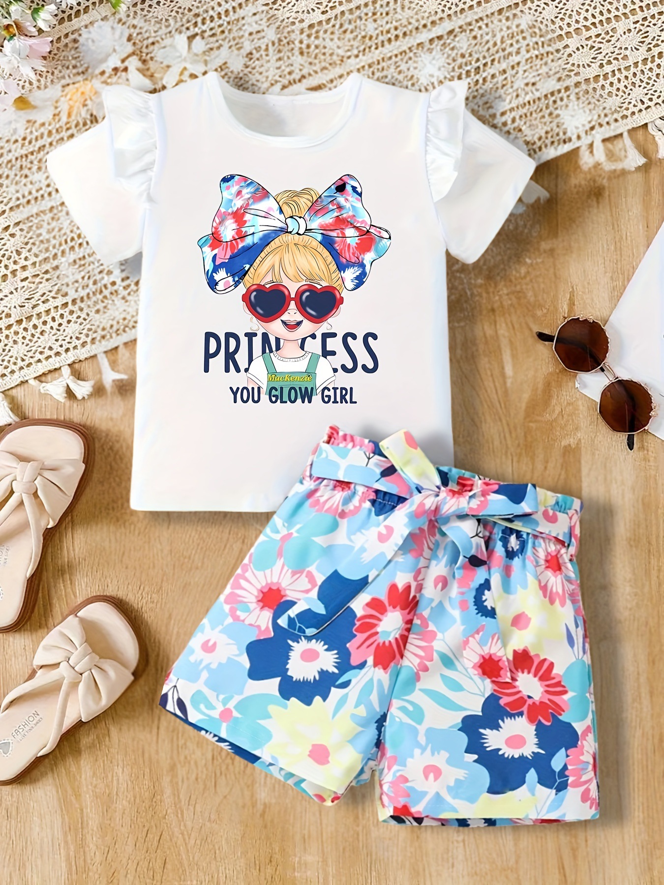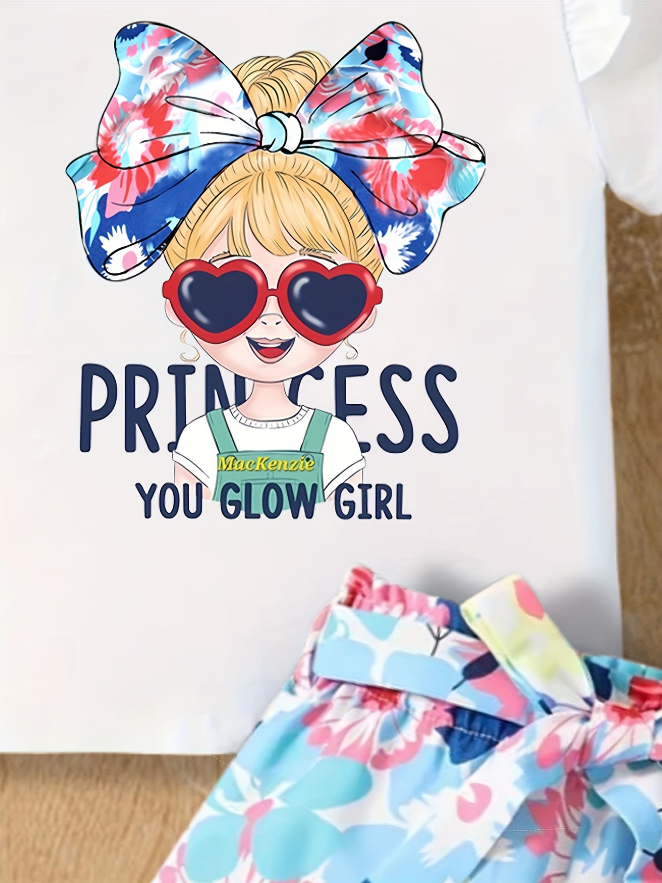 국경 간 대외 무역 INS 소녀 패션 일러스트 프린트 짧은 소매 세트 둥근 목 짧은 소매 티셔츠 세트 1-8 세