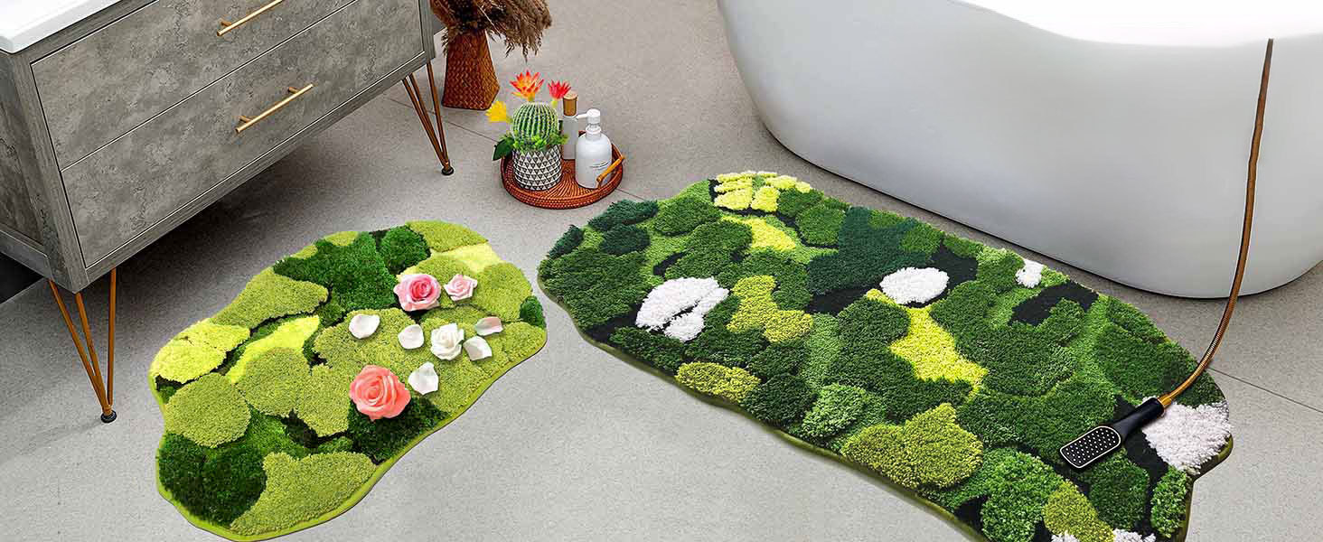 욕실 카펫을 가득 채우는 녹색 이끼 세대는 욕실 매트 미끄럼 방지 기계 빨 수있는 흡수성 카펫을 남깁니다.스토어 가기