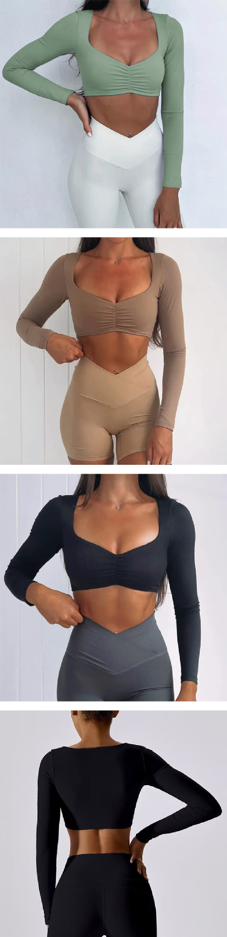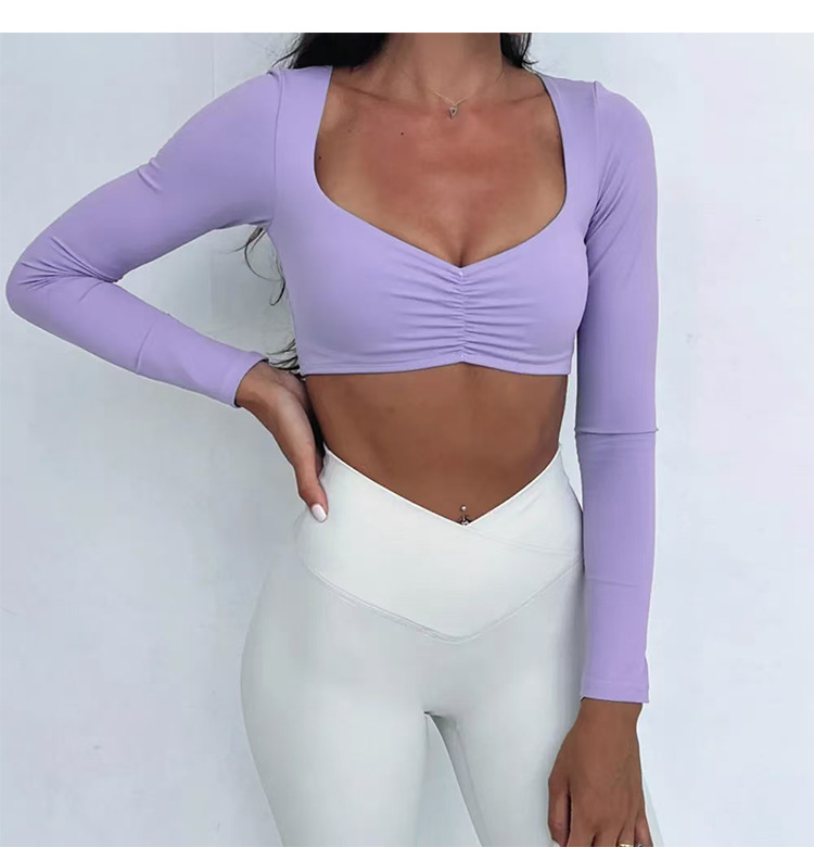 유럽과 미국의 새로운 패션 봄 스포츠 탑 요가 긴 소매 여성 가슴 패드 슬림 높은 탄성 피트니스 탑 여성