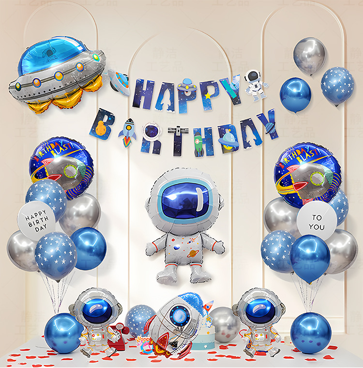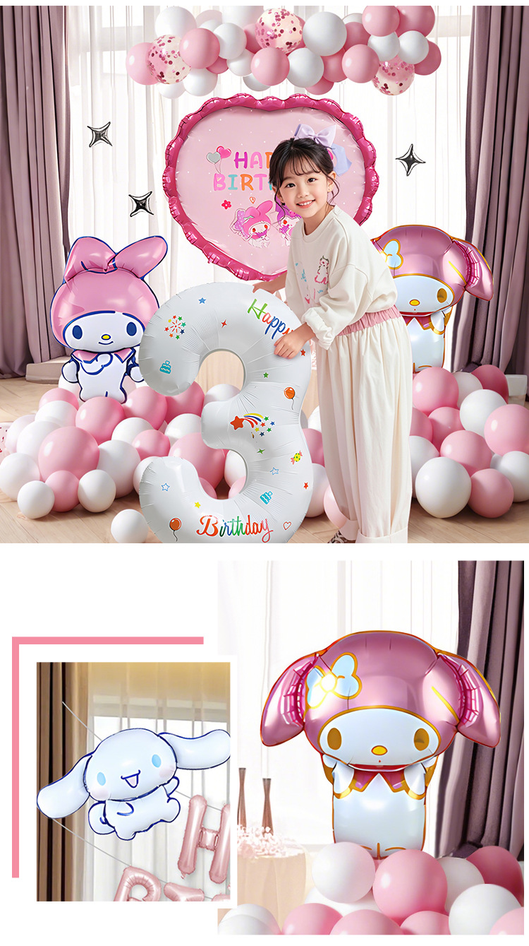 국경 간 어린이 생일 장식 장면 레이아웃 알루미늄 필름 풍선 세트 소년 소녀 파티 만화 테마 배경
