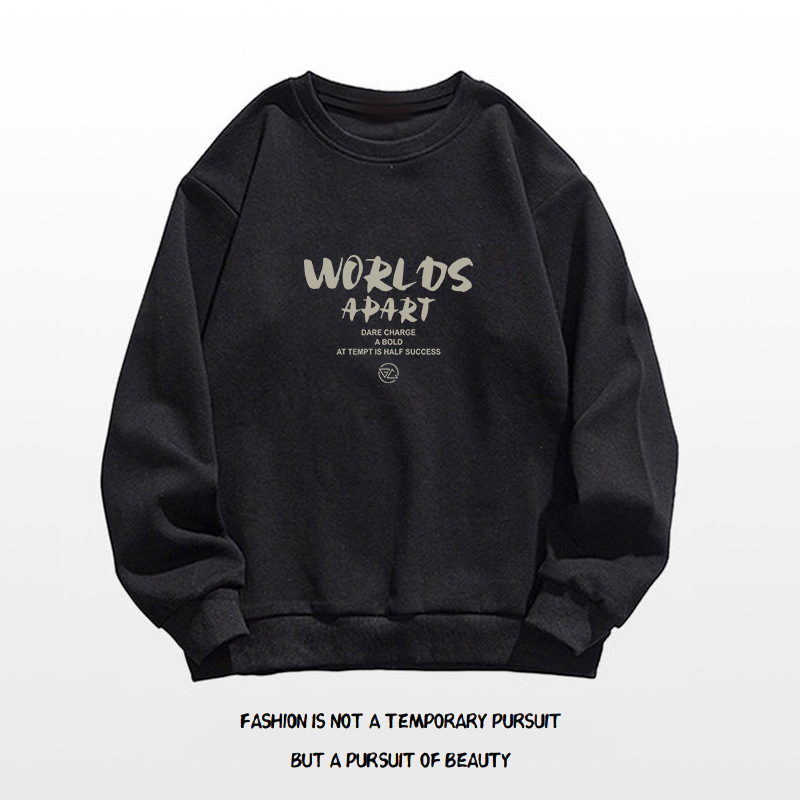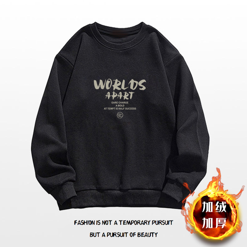 • 블랙 라운드넥 스웨트셔츠 플러스 벨벳스타일-558【GL】