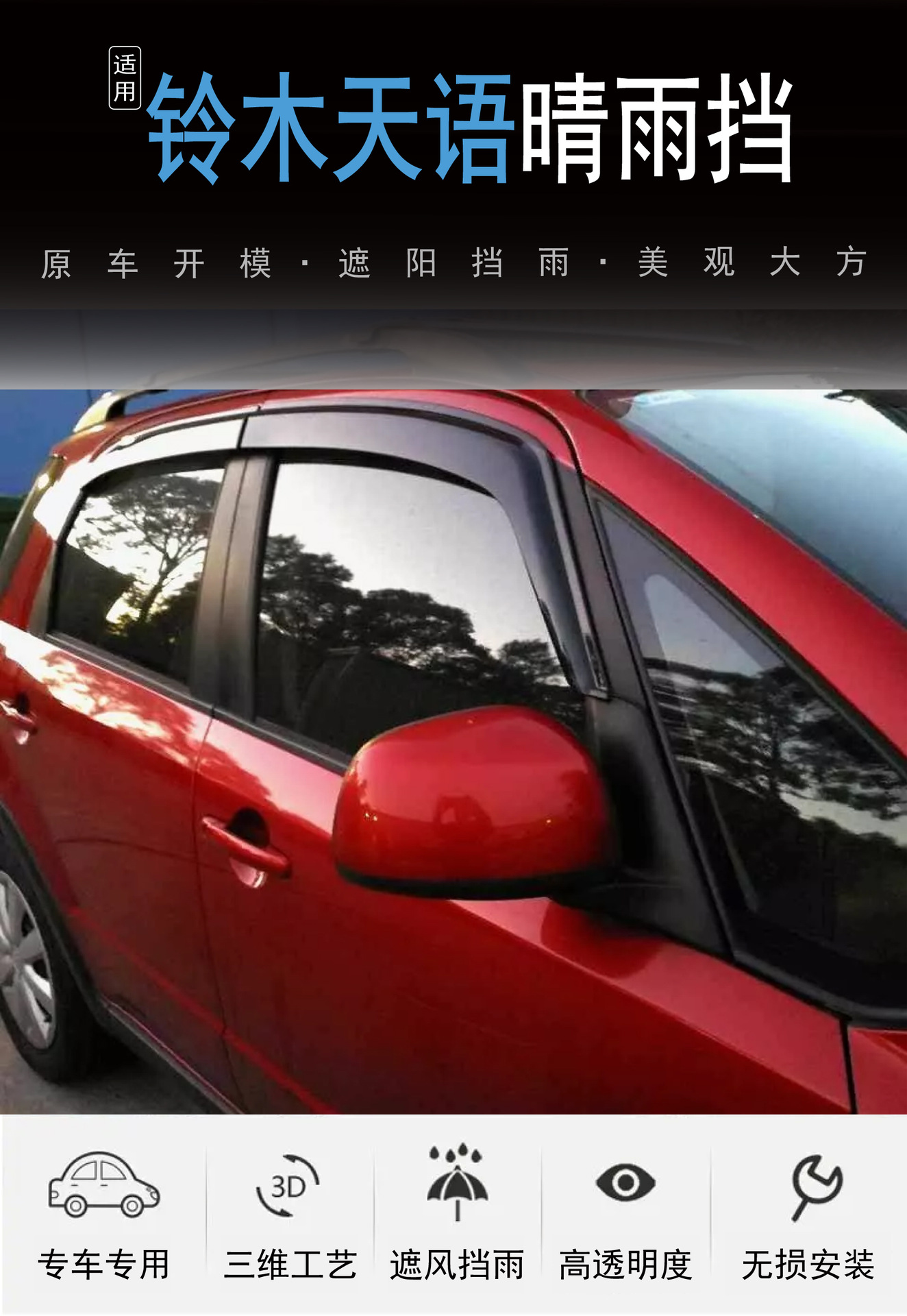 2007-2016 스즈키 Tianyu SX4 창 커버 비 방지 아크릴 자동차 비 방패의 국경 간 응용 프로그램