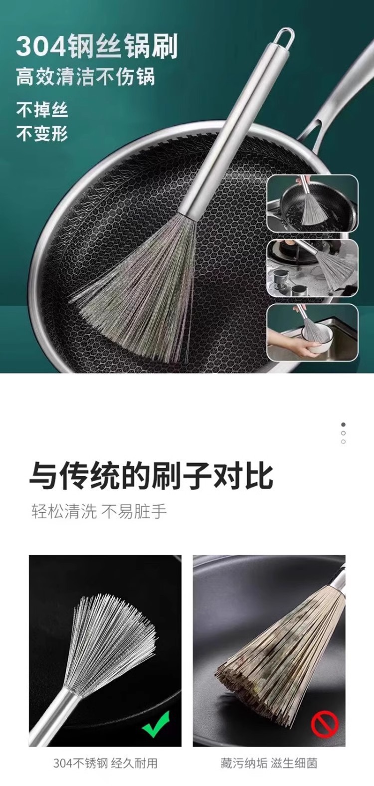 스테인레스 스틸 긴 손잡이 냄비 브러시 주방 특수 교수형 냄비 청소 오염 제거 아티팩트 가정용 교수형 긴 와이어 브러시