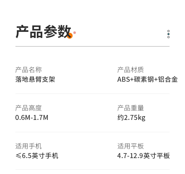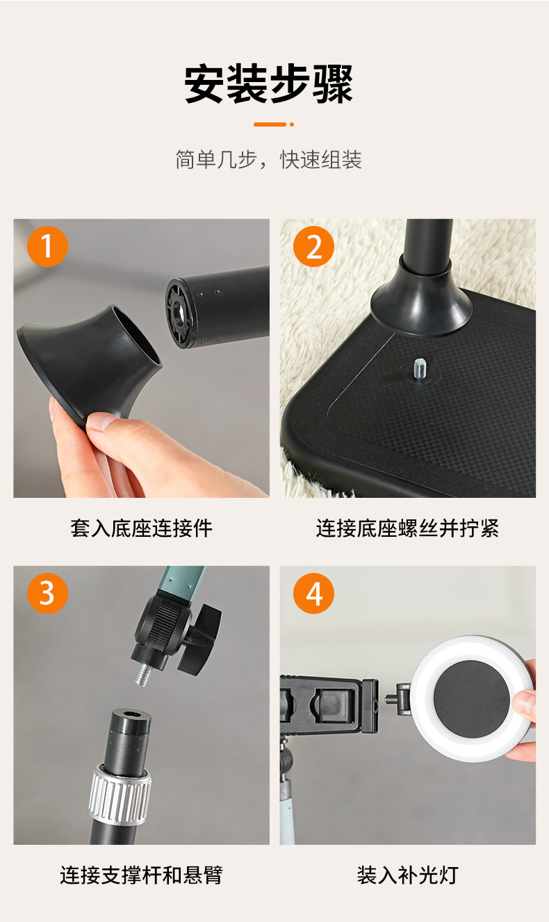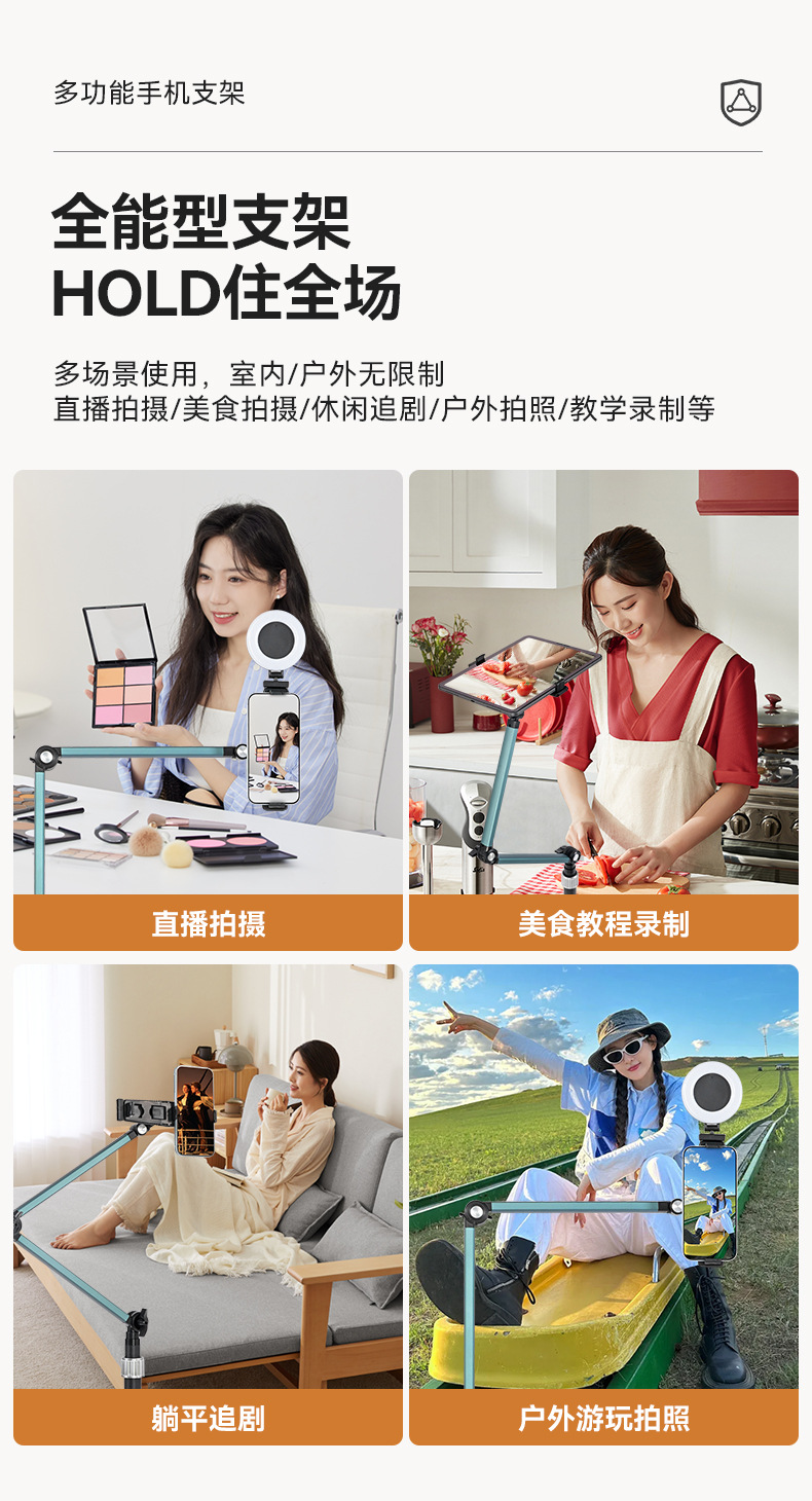 2024 새로운 1.7M 휴대 전화 생방송 특수 브래킷 침대 옆 바닥 오버 헤드 브래킷 오버 헤드 브래킷 게으른 브래킷