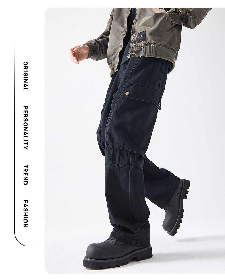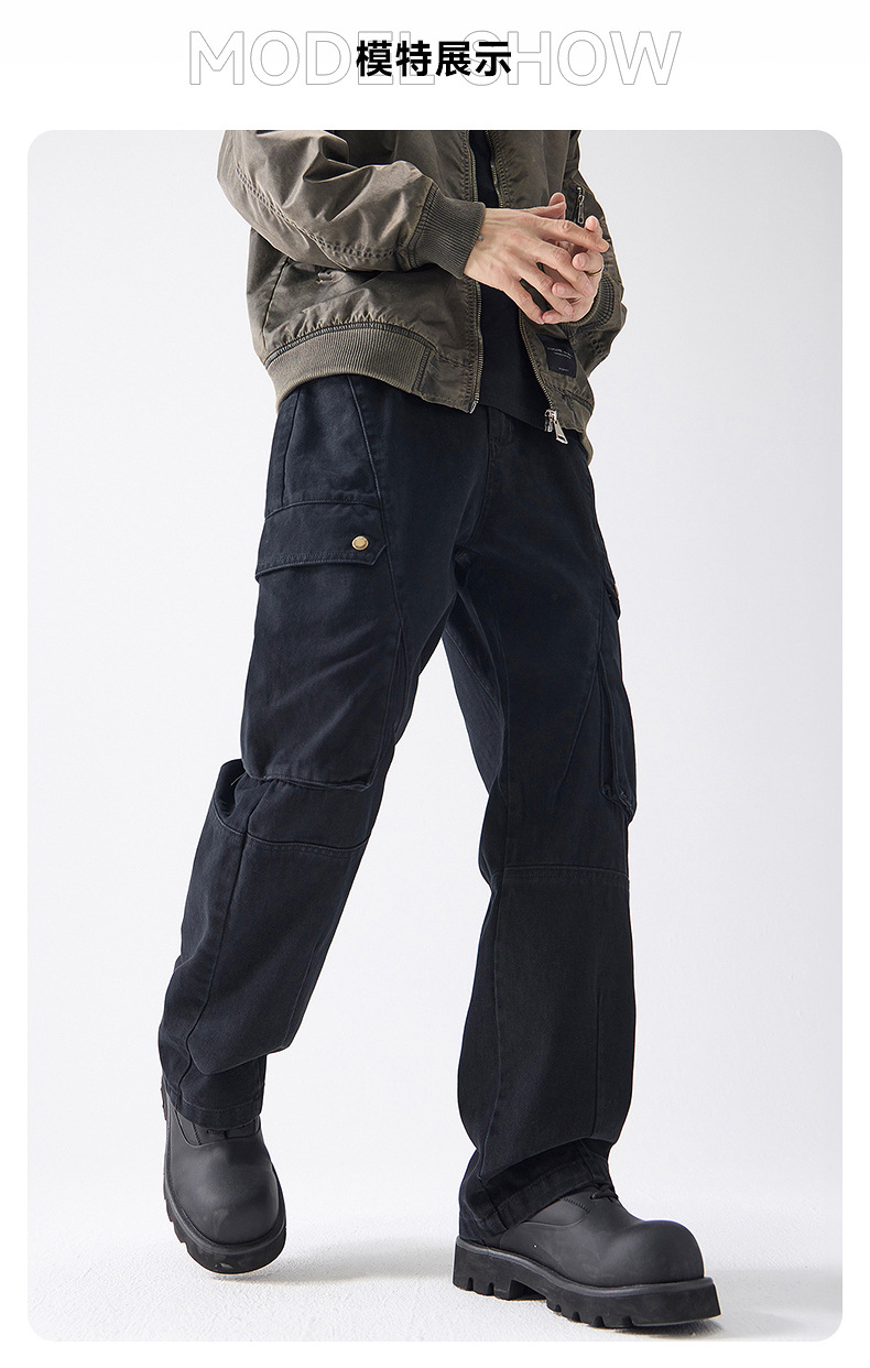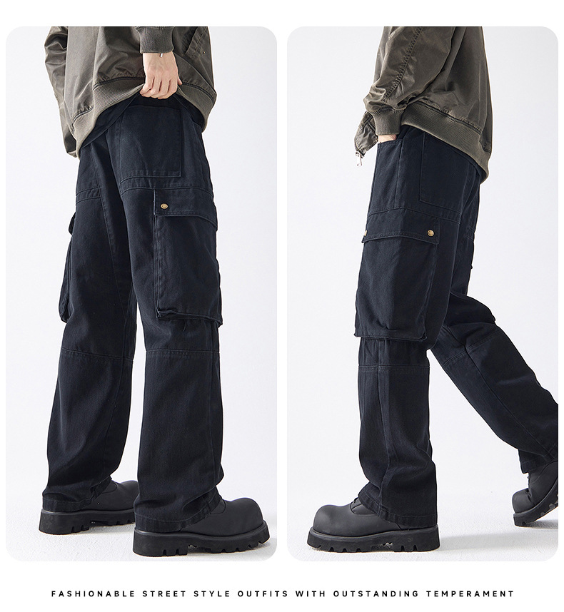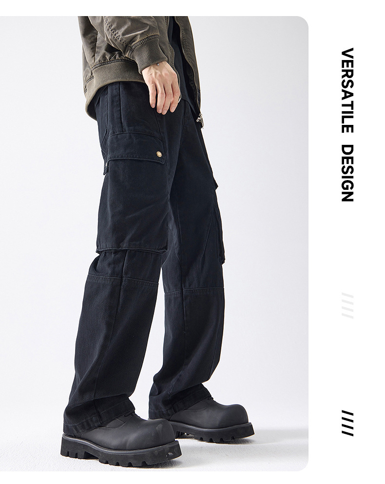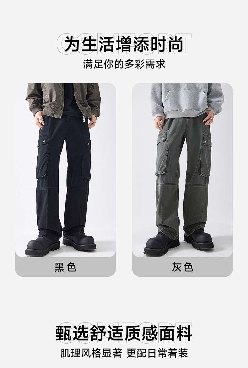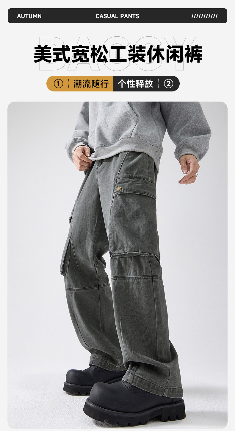 Muqiu 남성복 ∠ American Retro Enzyme Washable 하이 엔드 센스 오버롤 남성용 루즈 스트레이트 트렌디 브랜드 캐주얼 팬츠스토어 가기