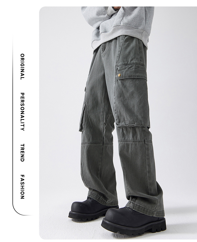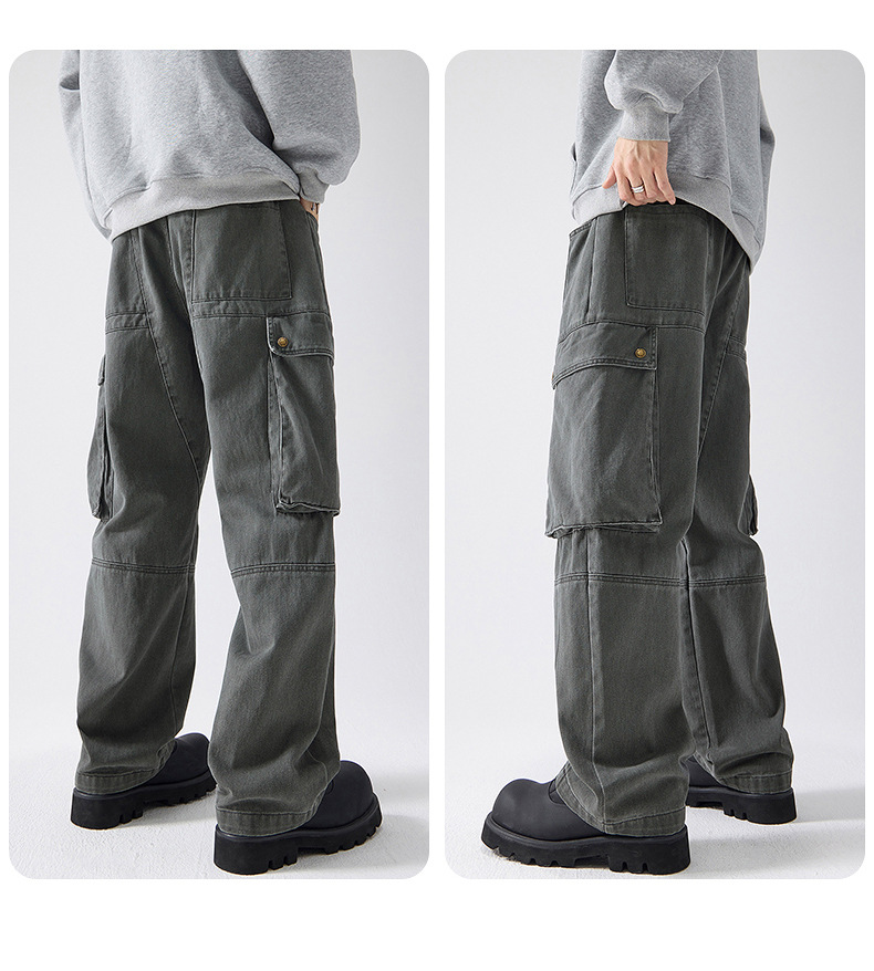 Muqiu 남성복 ∠ American Retro Enzyme Washable 하이 엔드 센스 오버롤 남성용 루즈 스트레이트 트렌디 브랜드 캐주얼 팬츠