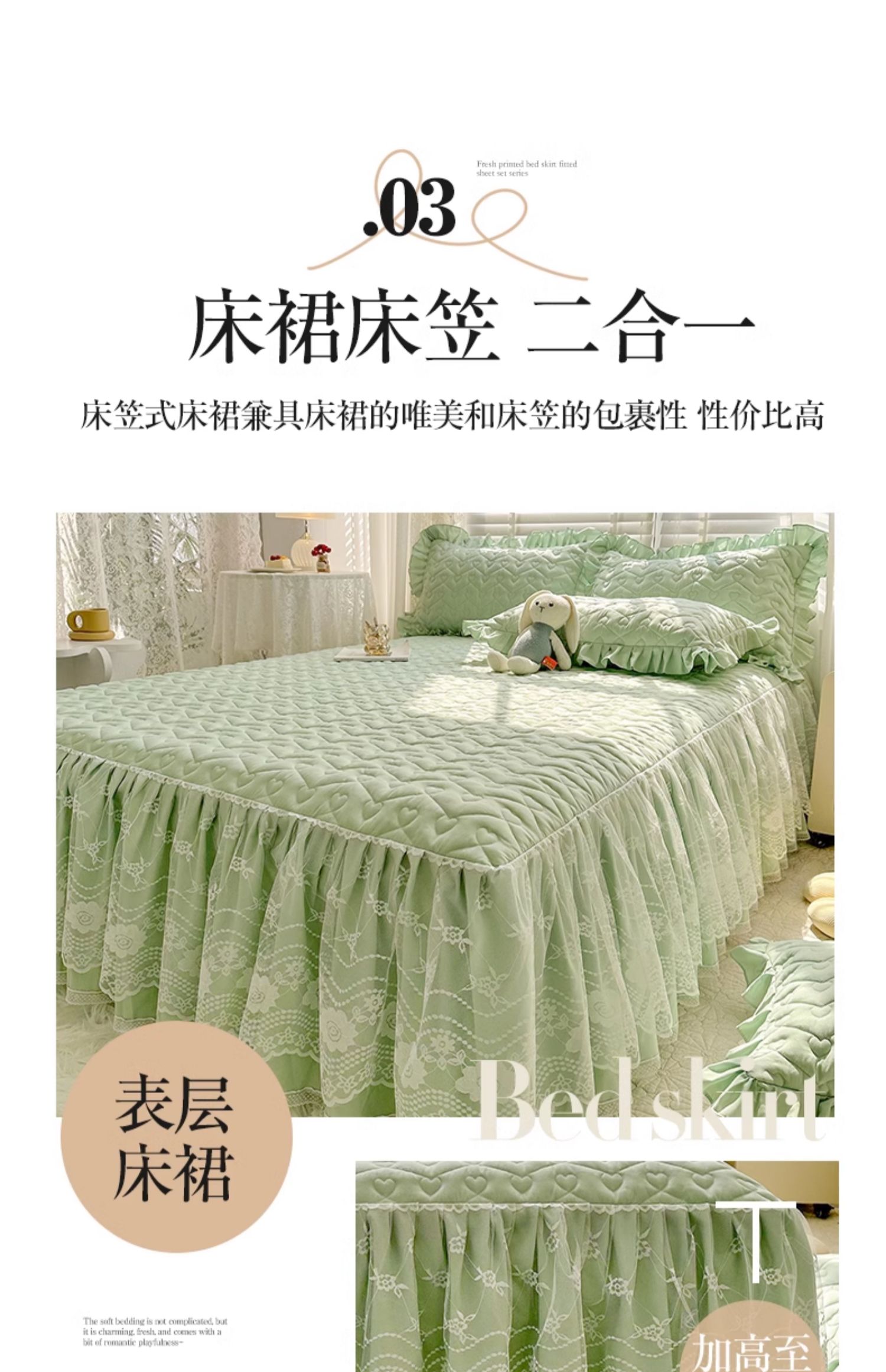 • 1.8m 침대 [싱글 침대 스커트 180x220cm + 퀼팅 베갯잇 한 쌍]