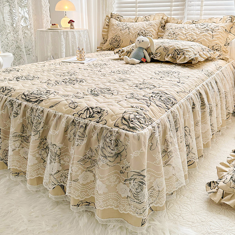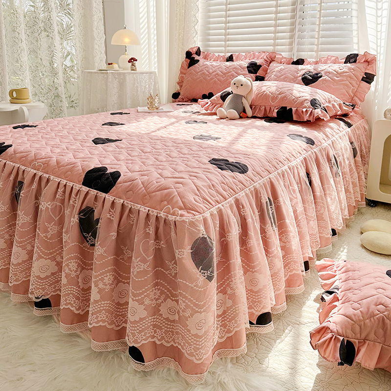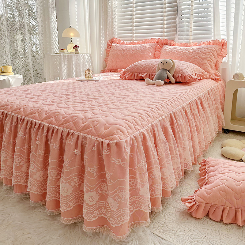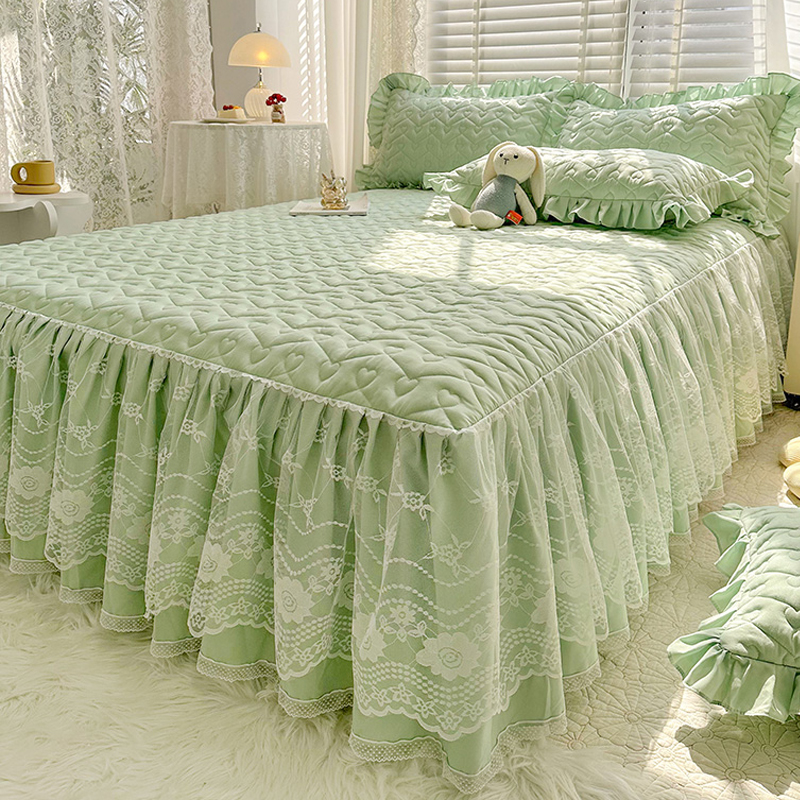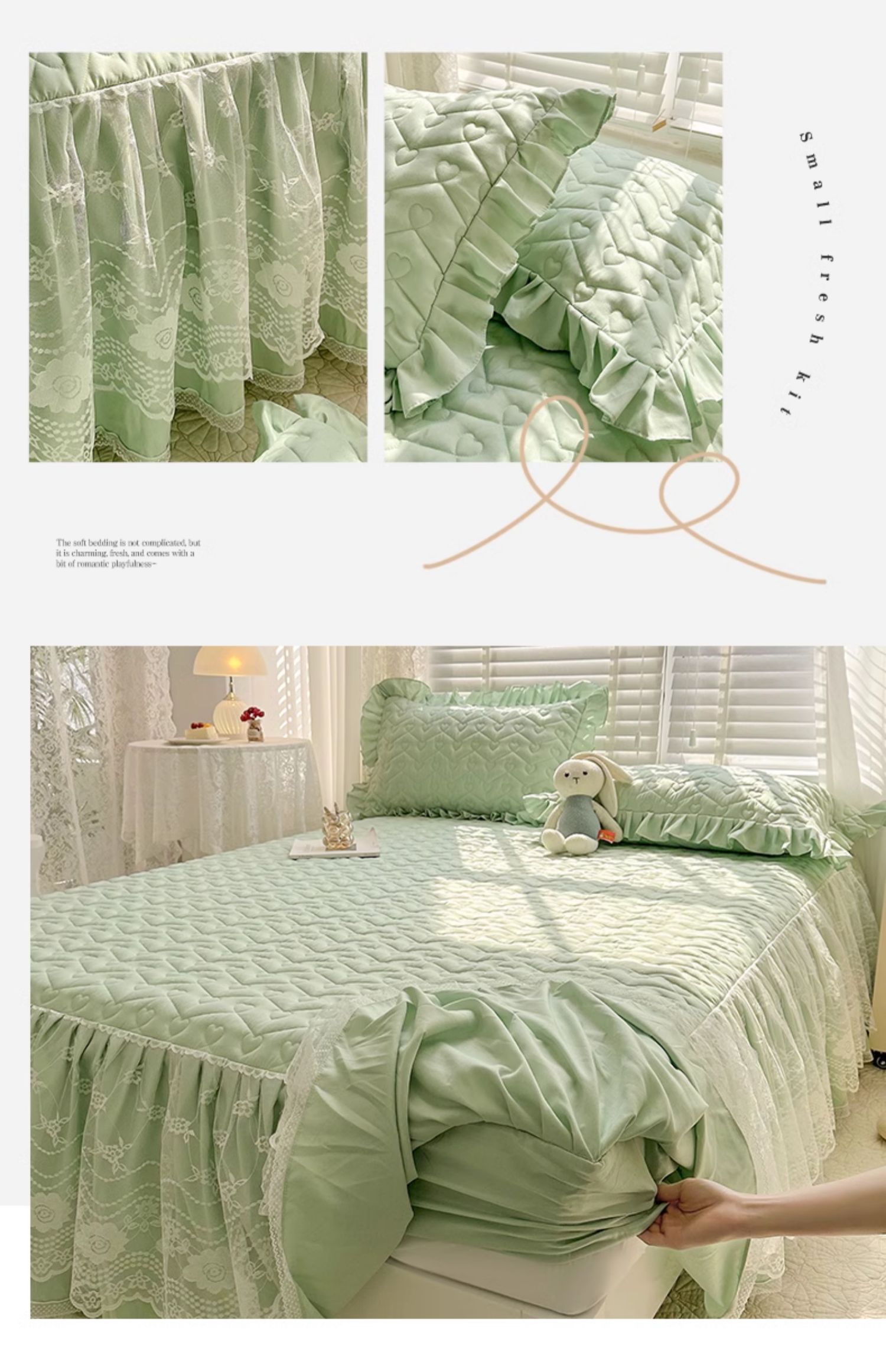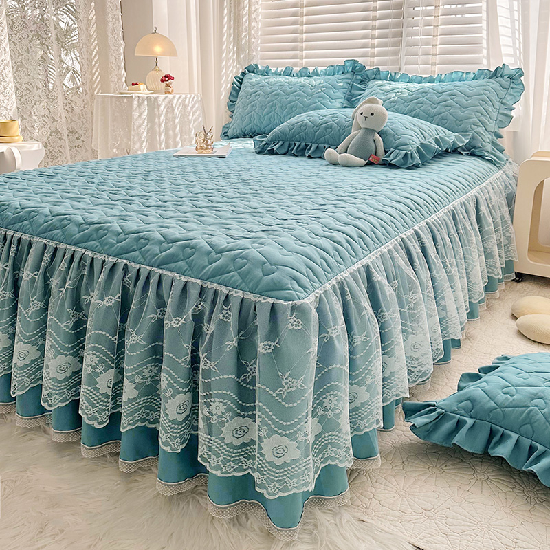 JW 퀼팅 침대 스커트 싱글 피스 스커트 레이스 침대 커버가 있는 작은 신선한 침대 시트 3피스 침대 시트 세트 가정용 이불 커버 4피스