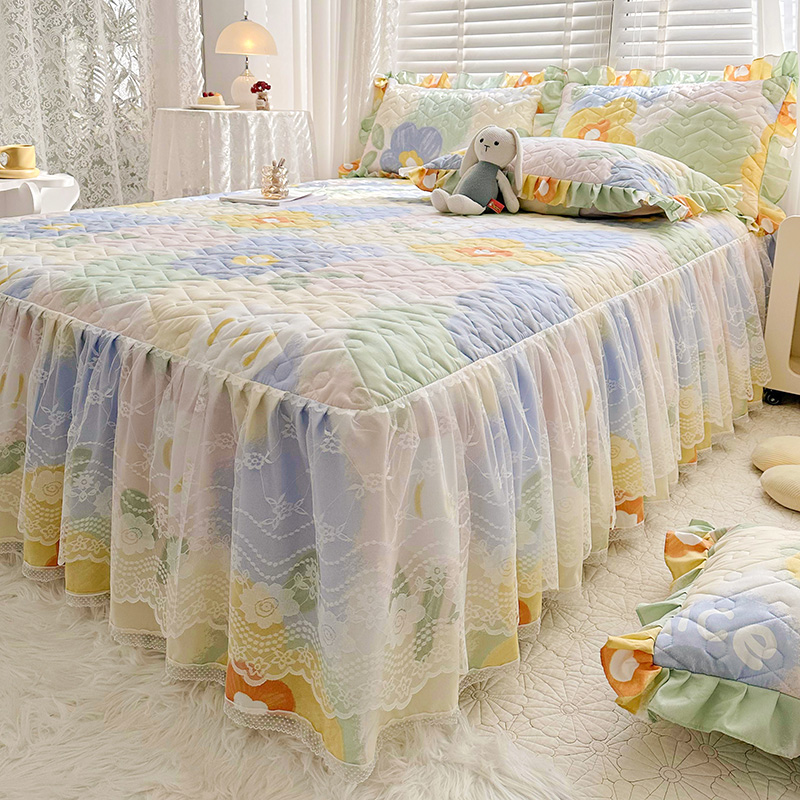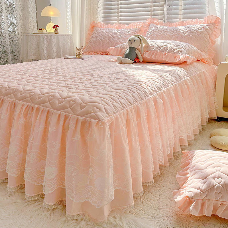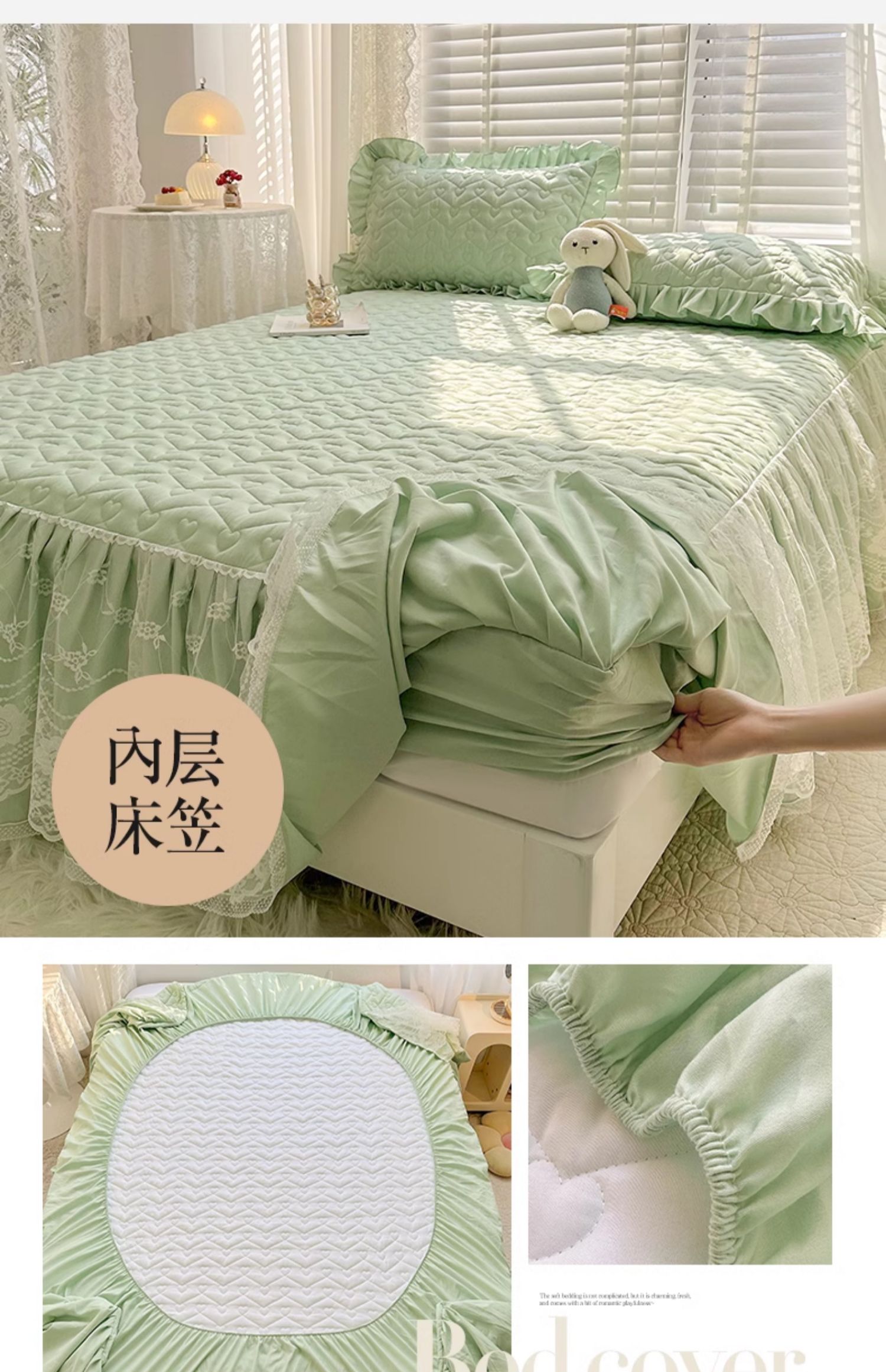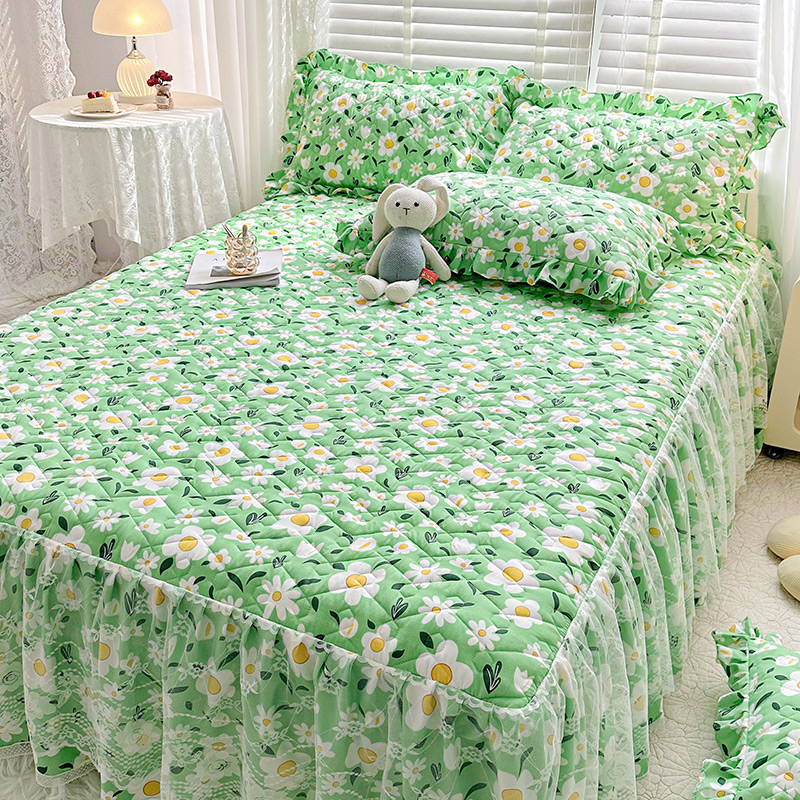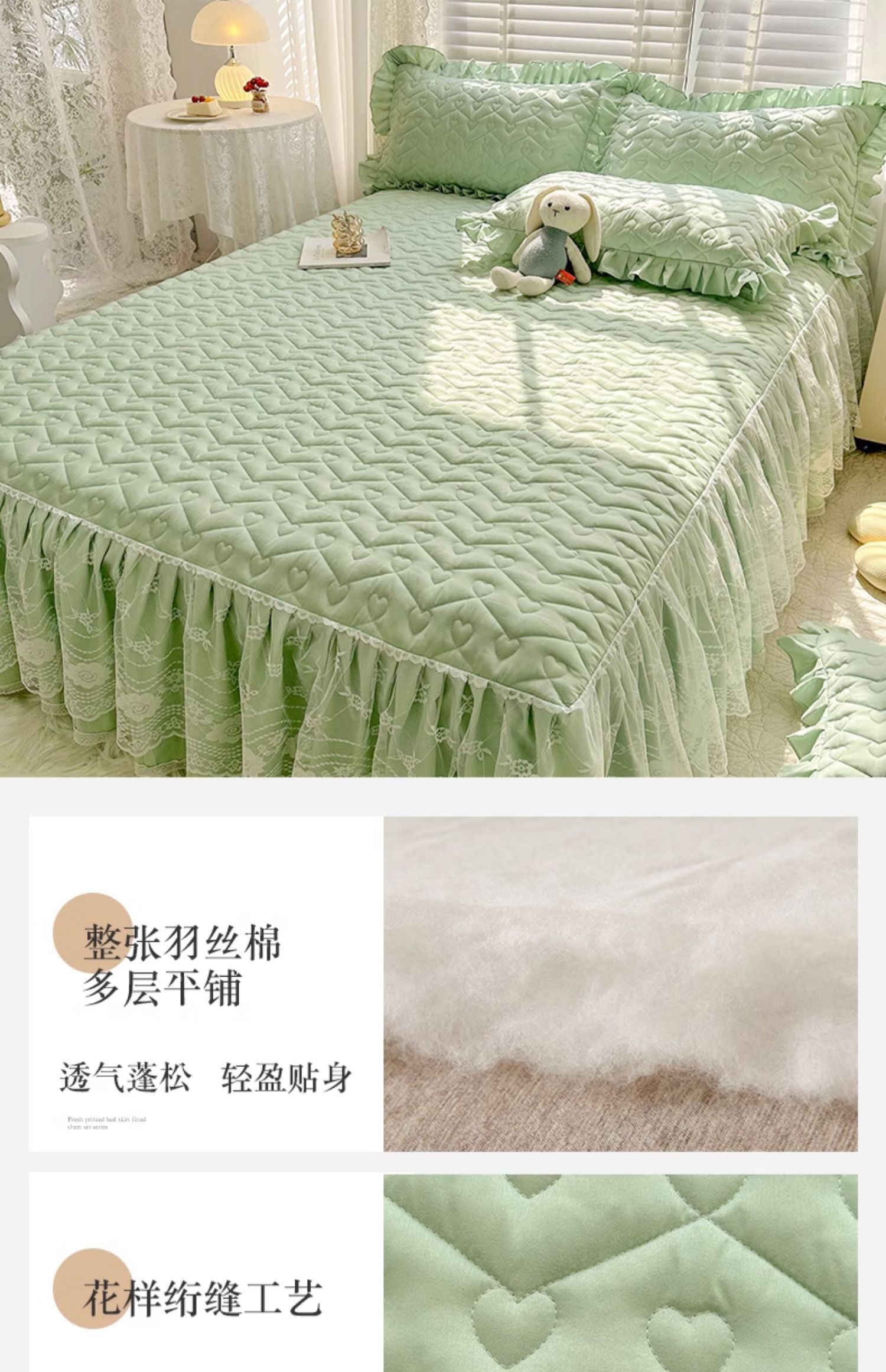 JW 퀼팅 침대 스커트 싱글 피스 스커트 레이스 침대 커버가 있는 작은 신선한 침대 시트 3피스 침대 시트 세트 가정용 이불 커버 4피스스토어 가기