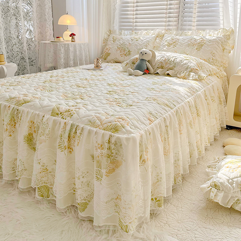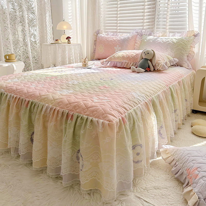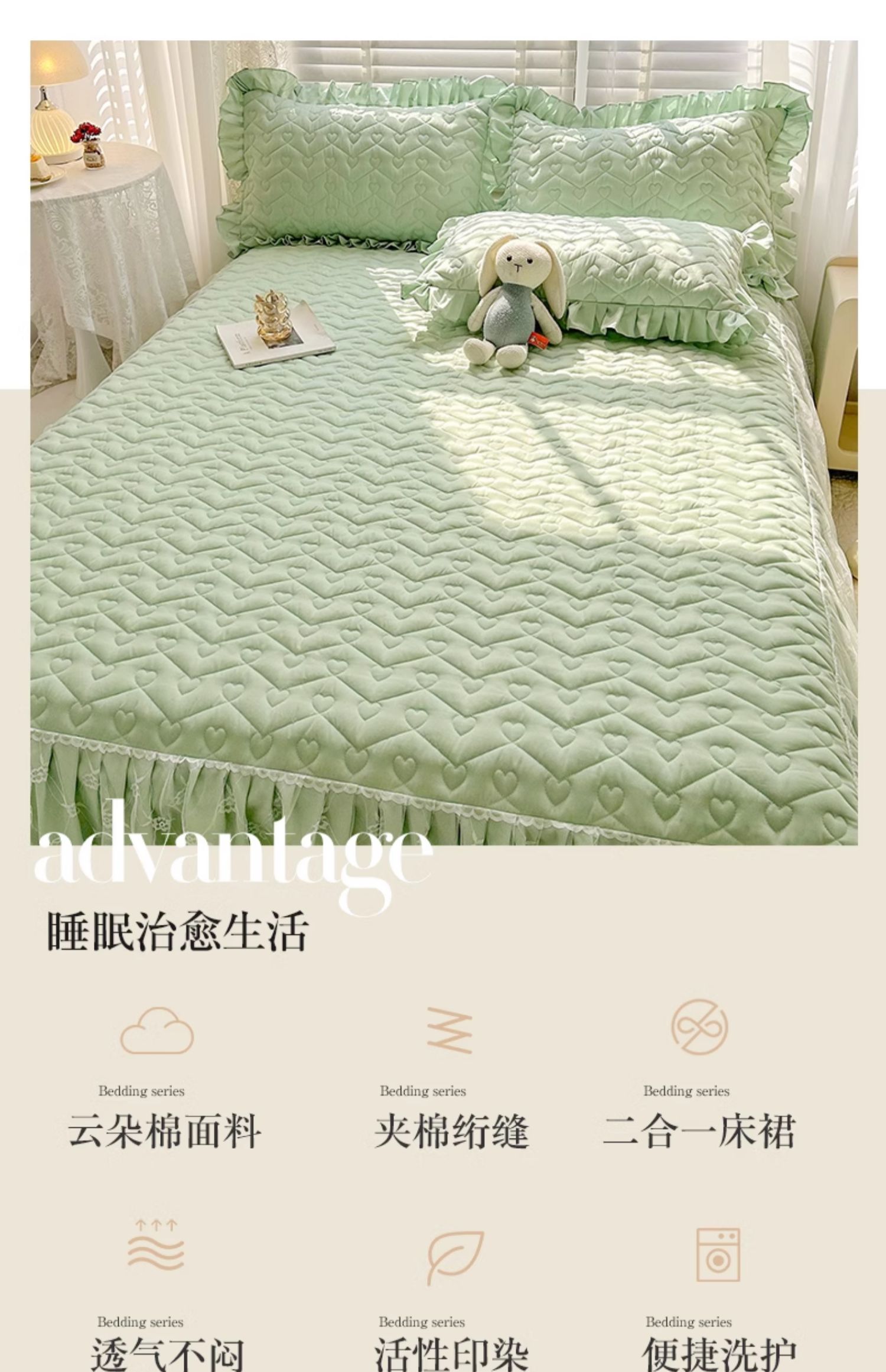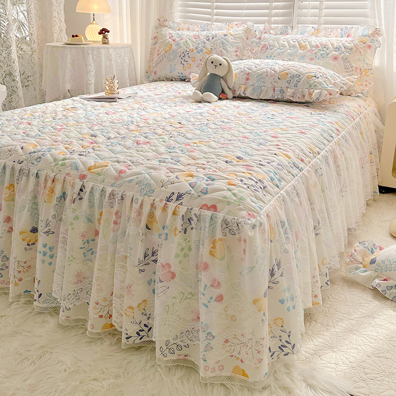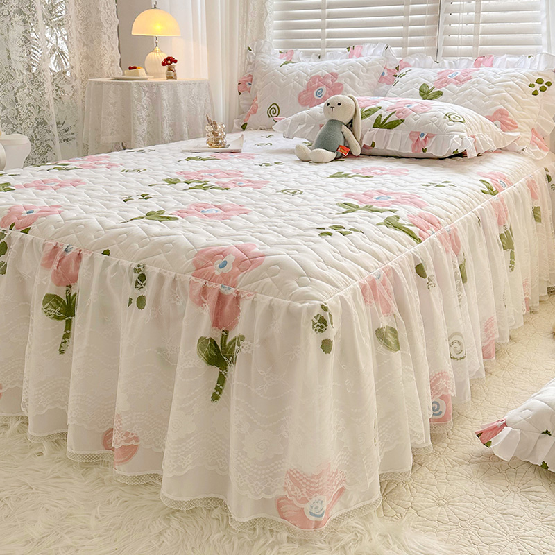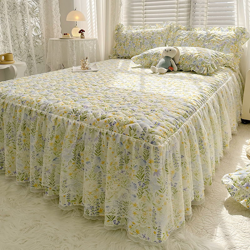JW 퀼팅 침대 스커트 싱글 피스 스커트 레이스 침대 커버가 있는 작은 신선한 침대 시트 3피스 침대 시트 세트 가정용 이불 커버 4피스스토어 가기
