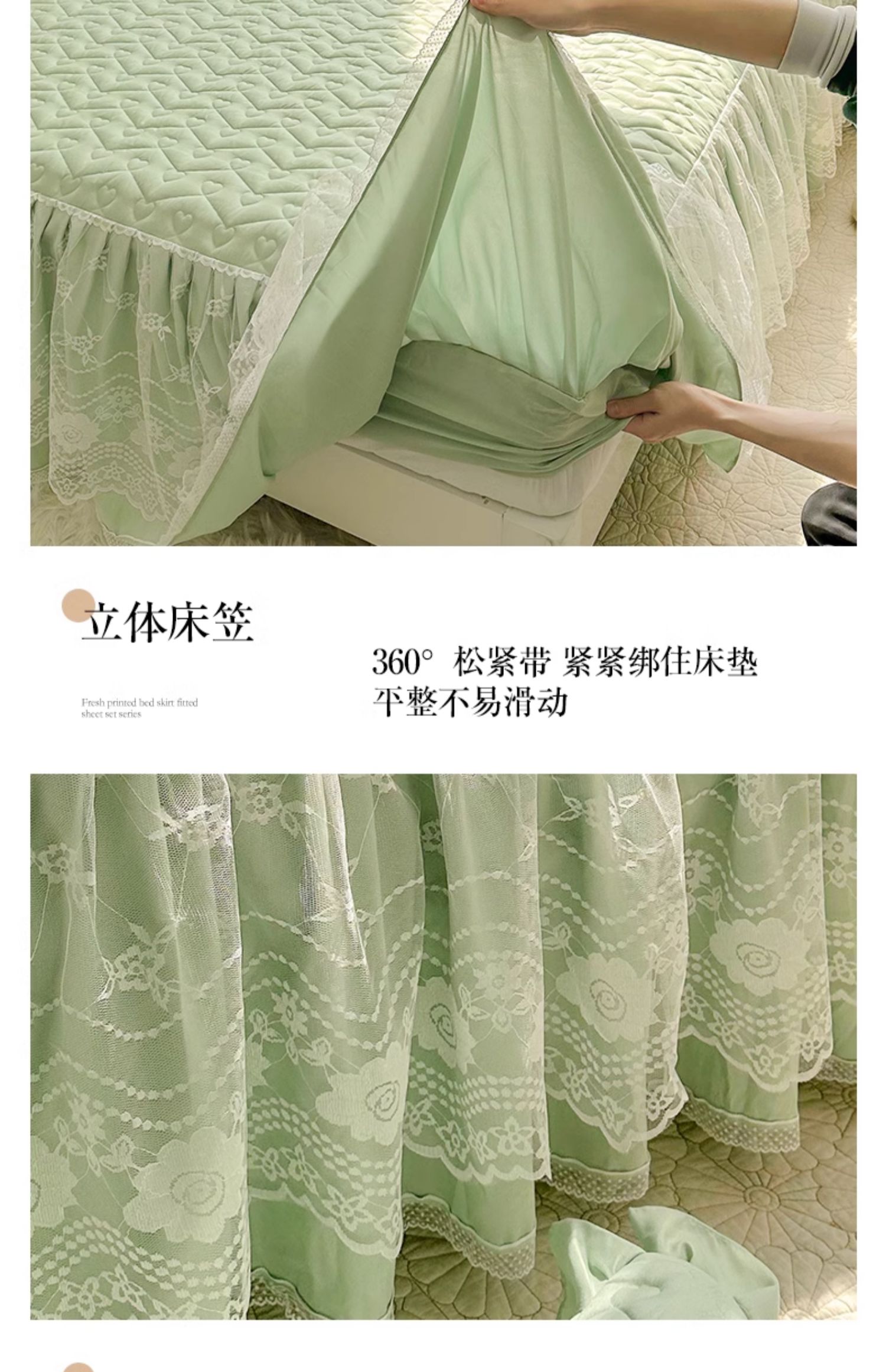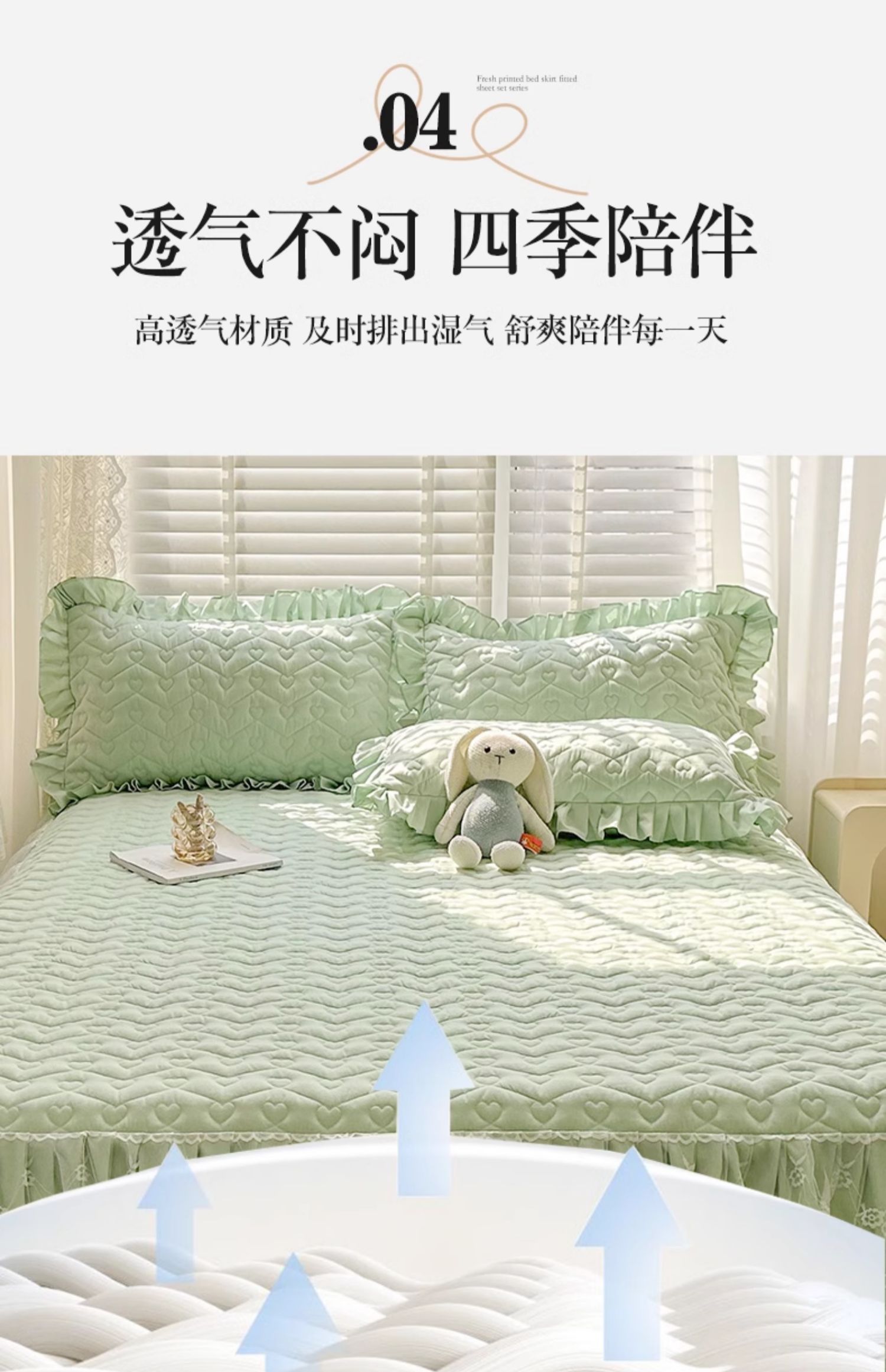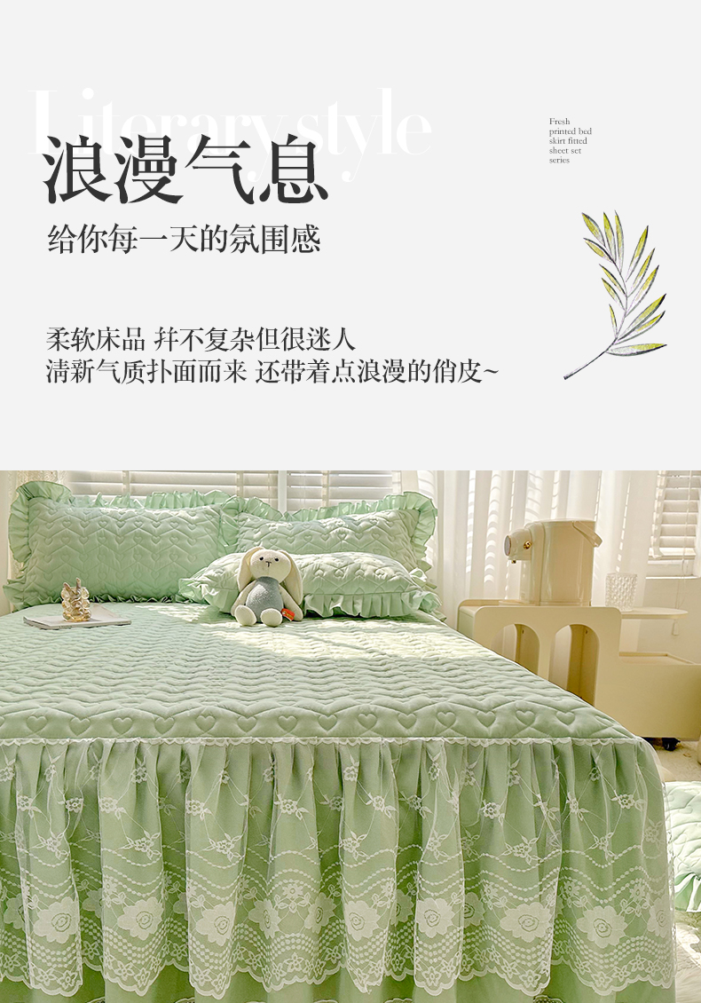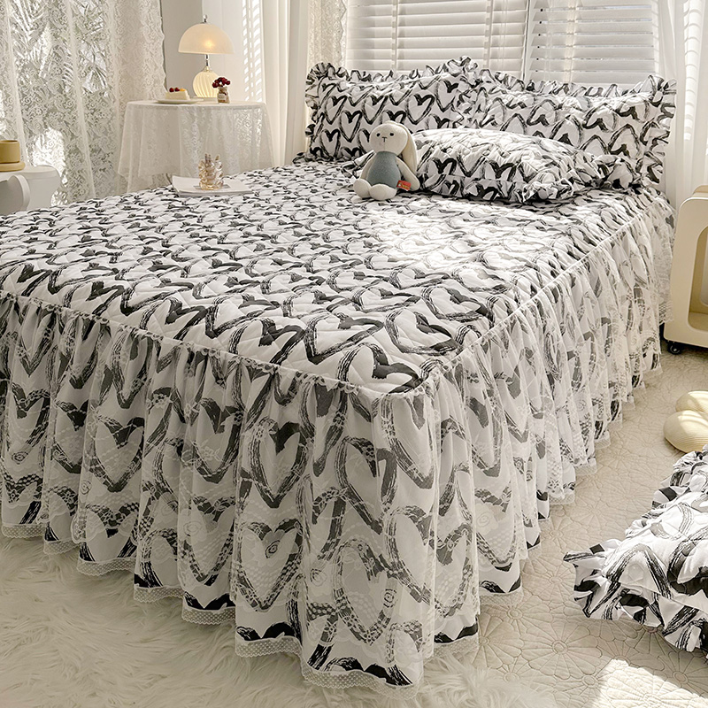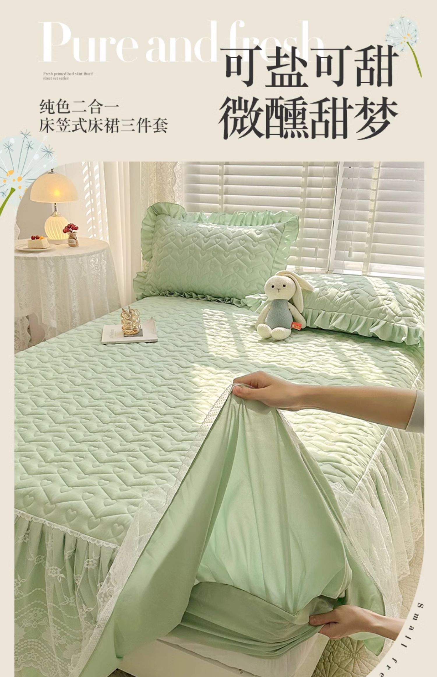 JW 퀼팅 침대 스커트 싱글 피스 스커트 레이스 침대 커버가 있는 작은 신선한 침대 시트 3피스 침대 시트 세트 가정용 이불 커버 4피스스토어 가기