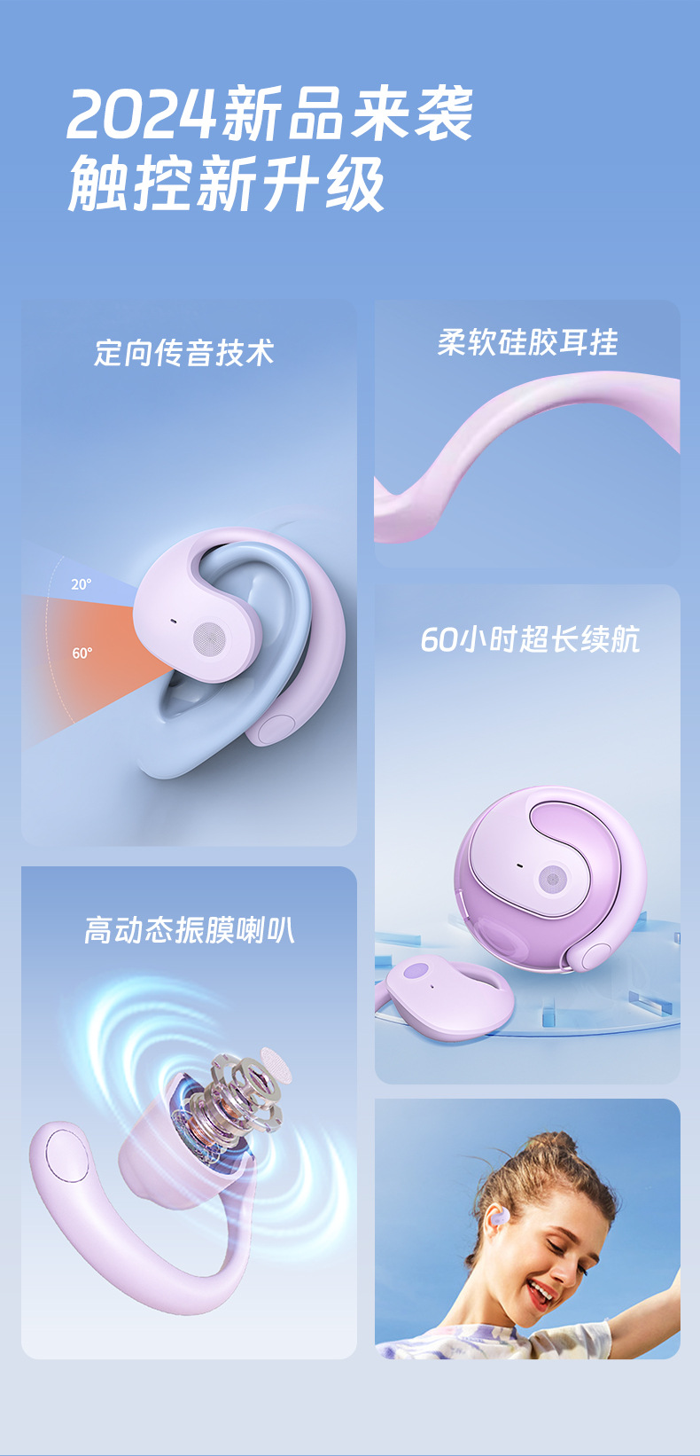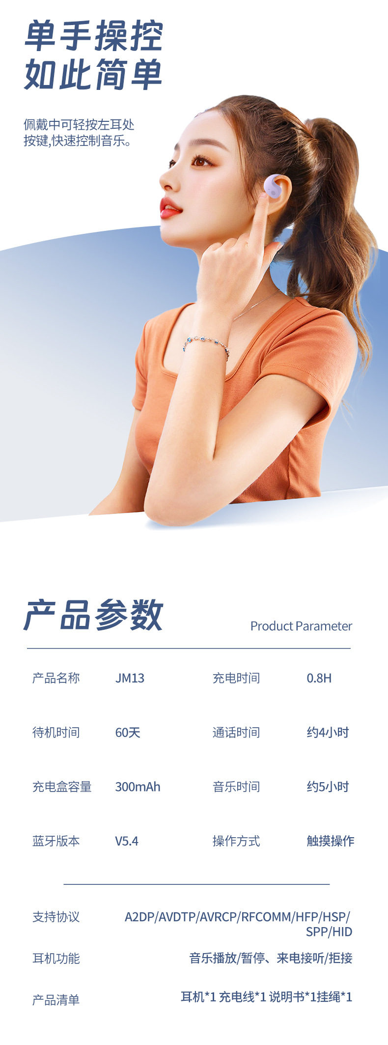 한국 현대 현대 소형 코코넛 볼 JM13 인기 Ai 스마트 번역 헤드셋 귀걸이 형 OWS 블루투스 헤드셋