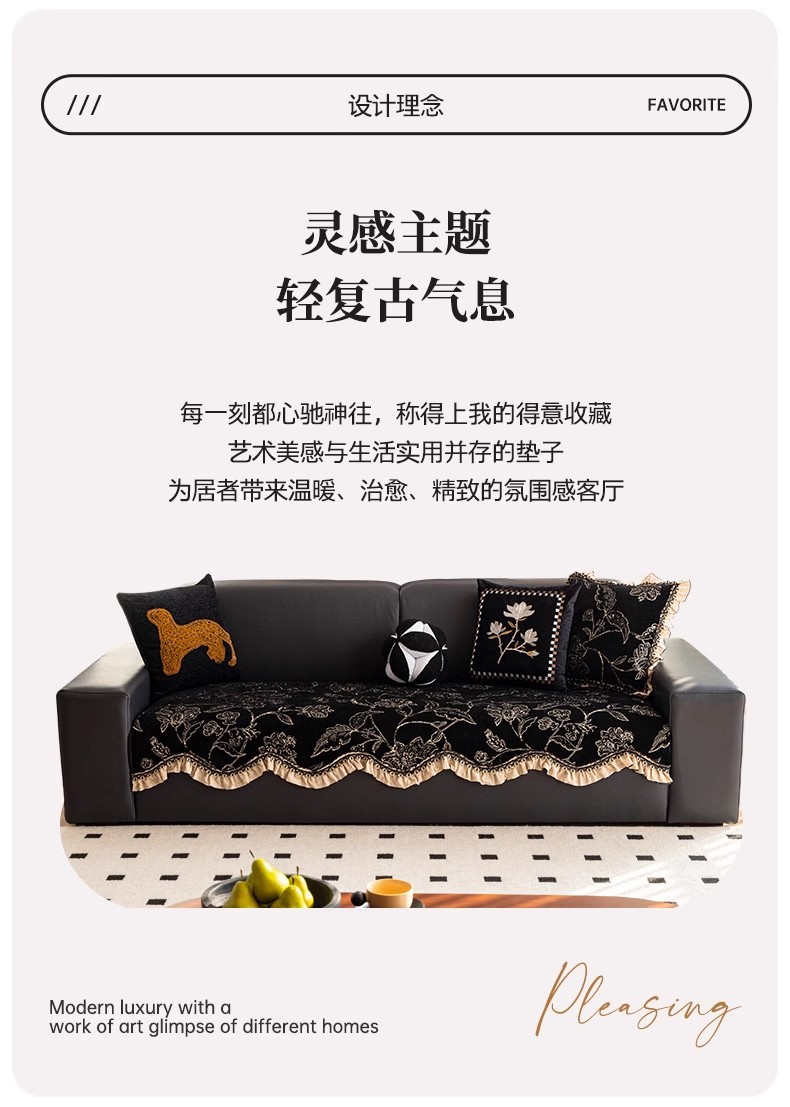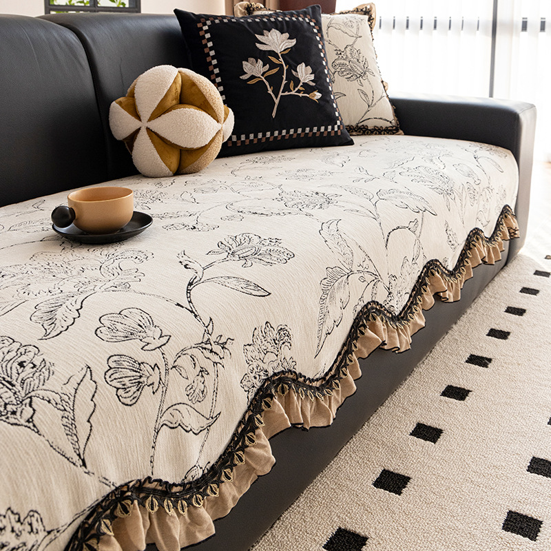 포시즌 유니버설 2024 새로운 스타일 레트로 스커트 고급 미끄럼 방지 가죽 쿠션 커버 헝겊을위한 프랑스 스타일 특수 모양의 소파 쿠션