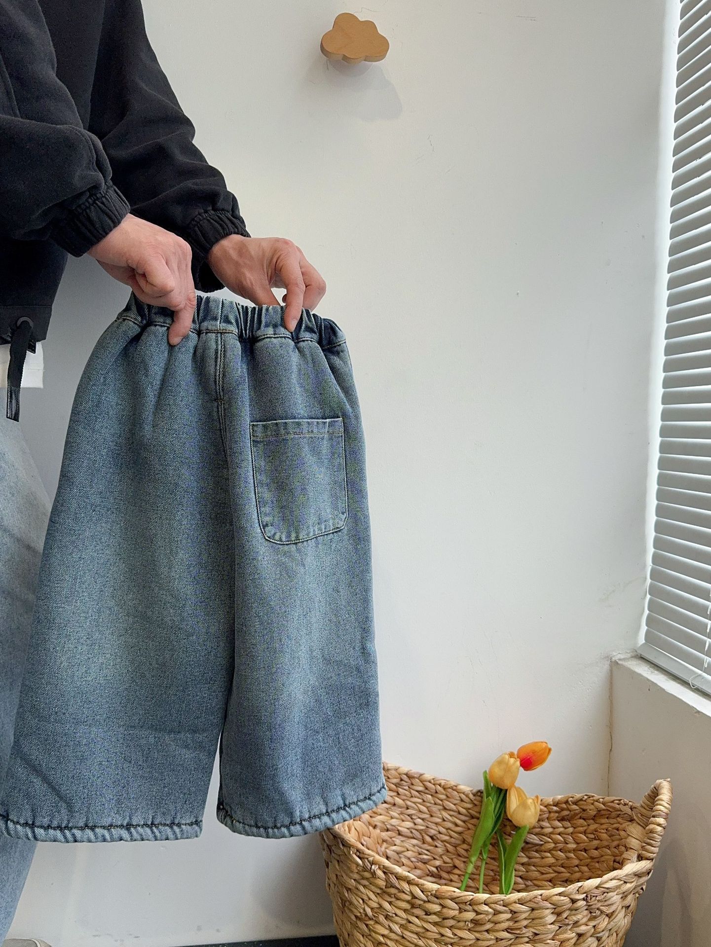 2024 새로운 소녀 느슨한 청바지 가을과 겨울 어린이 캐주얼 바지 한국식 소녀 기모 넓은 다리 바지스토어 가기