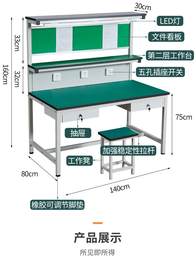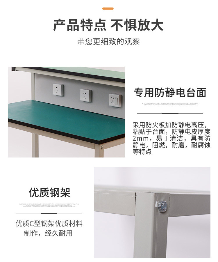 가벼운 공장 사출 성형 기계 조립 라인 검사 테이블 휴대 전화 수리 테이블 작업대가있는 작업장 정전기 방지 작업대스토어 가기