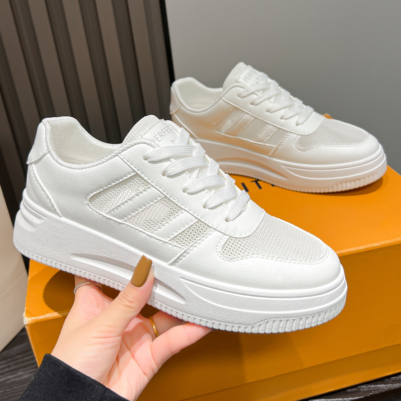 2024 봄과 여름 새로운 스포츠 캐주얼 화이트 슈즈 여성 Ins 한국식 메쉬 통기성 올 매치 싱글 레이어 슈즈 패셔너블 스니커즈