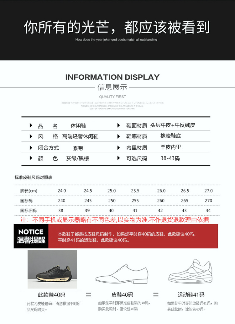 6:猪皮或羊皮内里和鞋垫,汗脚褪色属正常现象,非质量问题,建议穿深色袜子