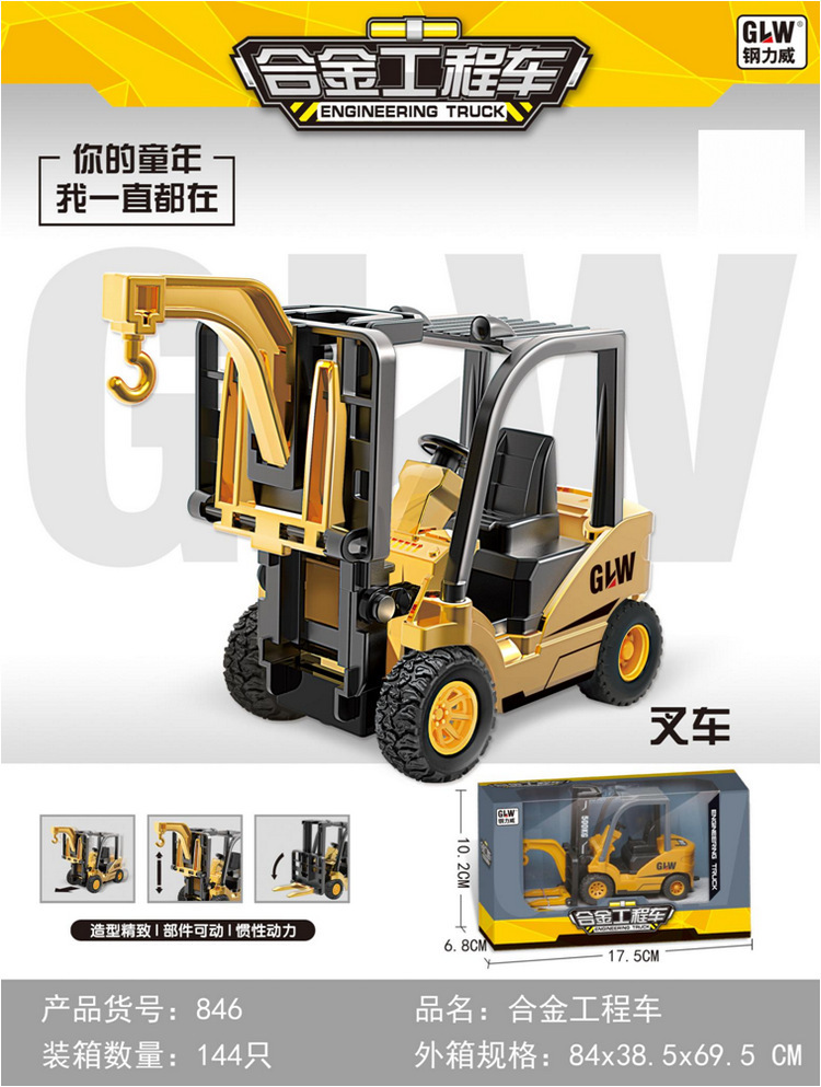 어린이 관성 전력 합금 공학 차량 장난감 선물 상자 소년 지게차 교육 모델 교육 기관 선물