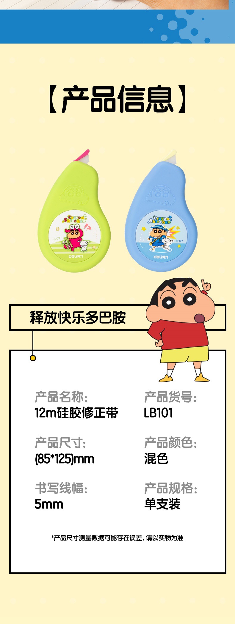 [12 m] 델리 LB101 크레용 샤오신 트루 가을 저항 보정 테이프 대용량 컬러 학생 보정 테이프스토어 가기