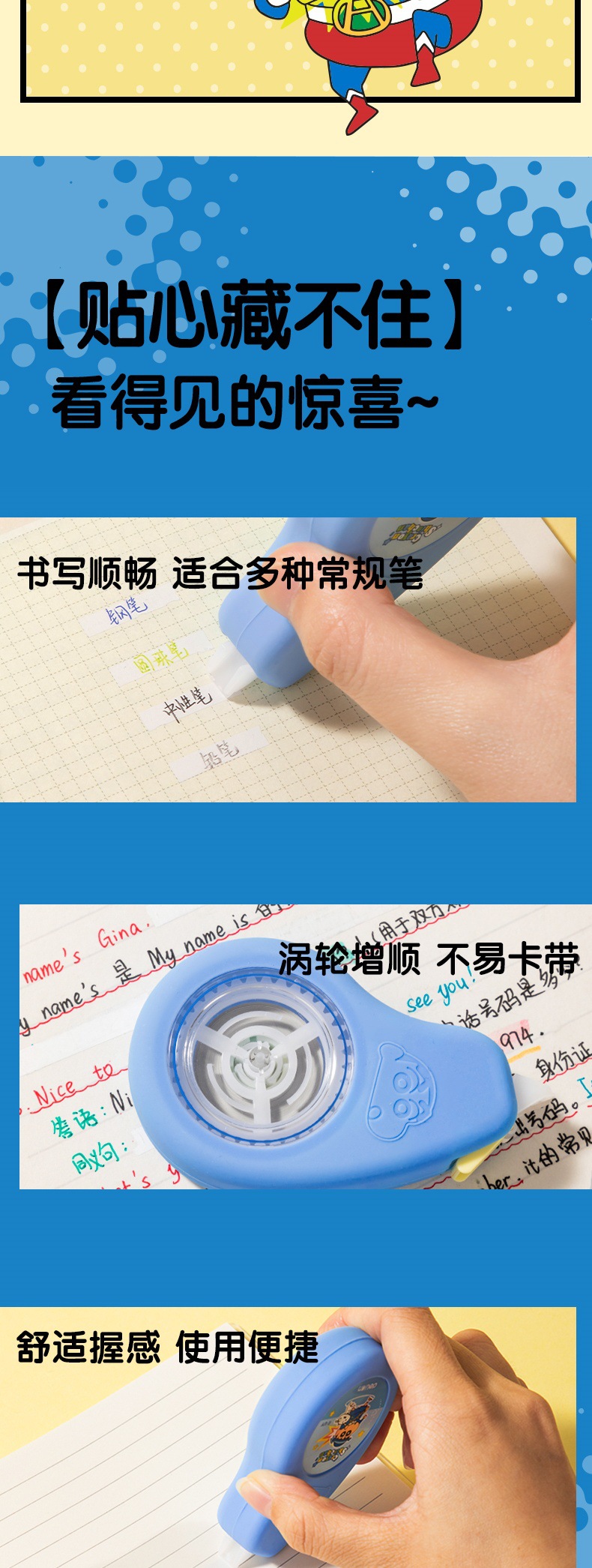 [12 m] 델리 LB101 크레용 샤오신 트루 가을 저항 보정 테이프 대용량 컬러 학생 보정 테이프