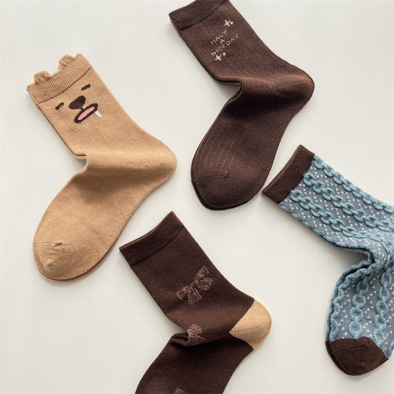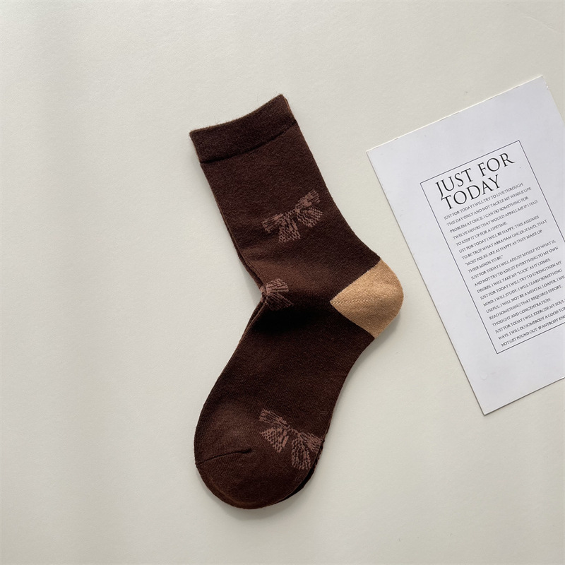 가을과 겨울 다크 브라운 부드럽고 섬세한 캐시미어 양말 여성 한국 스타일 활 중간 더미 양말 귀여운 만화 편지 더미 양말