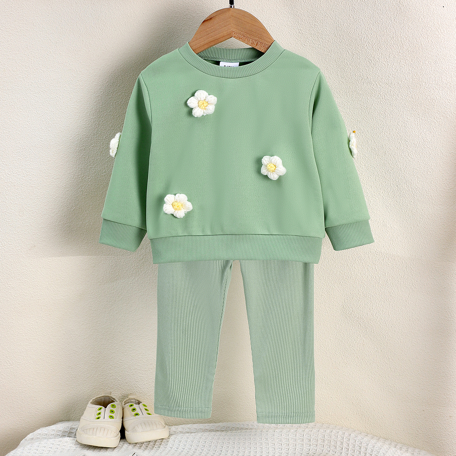아마존 국경 유럽 및 미국 가을 및 겨울 새로운 아동복 3 차원 꽃 탑 안티 스트라이프 바지 캐주얼 투피스 세트