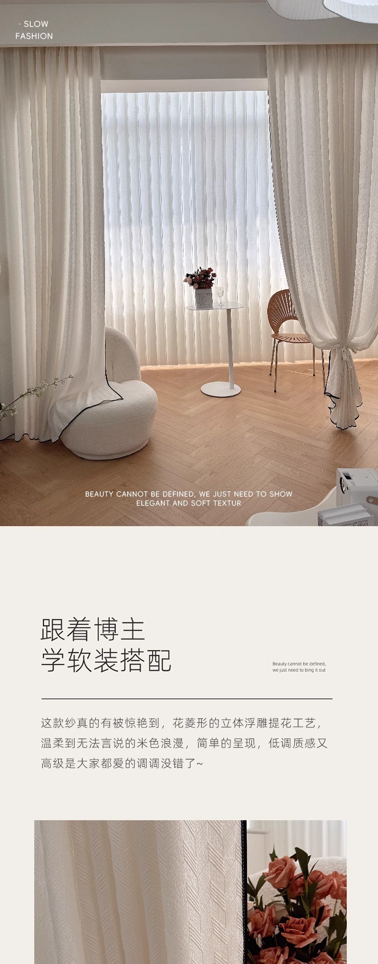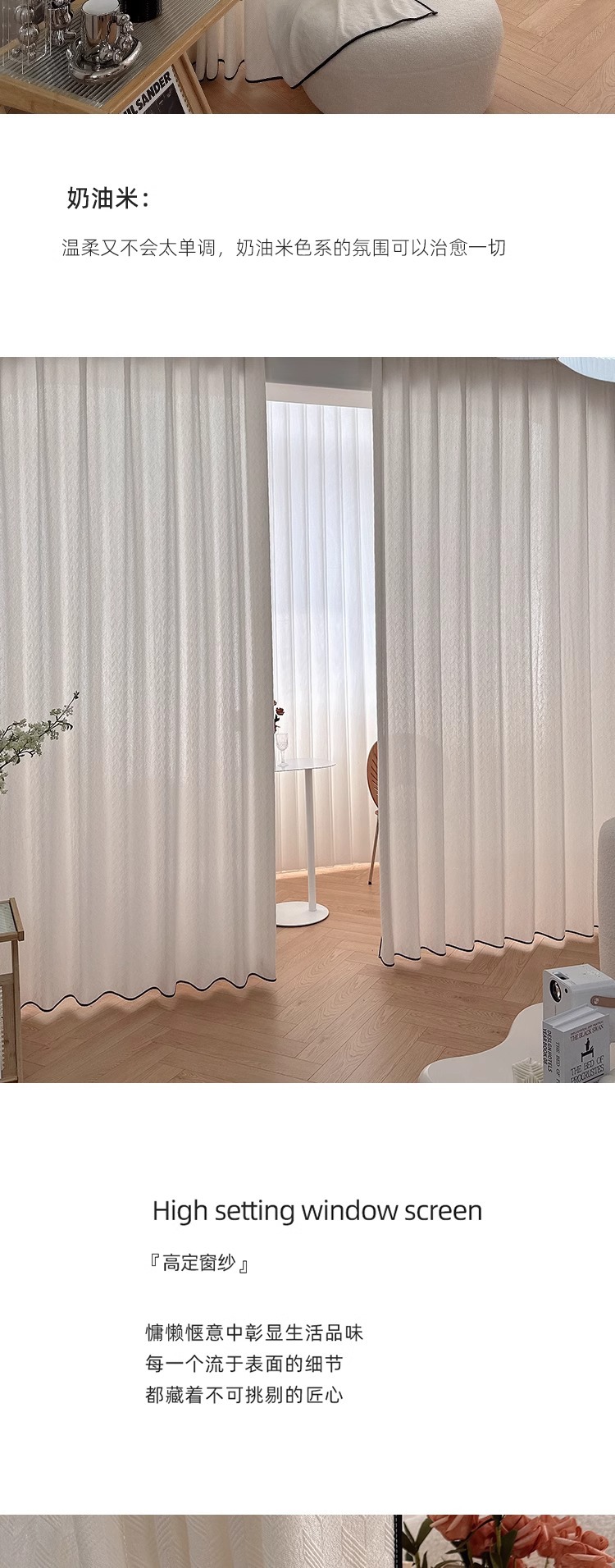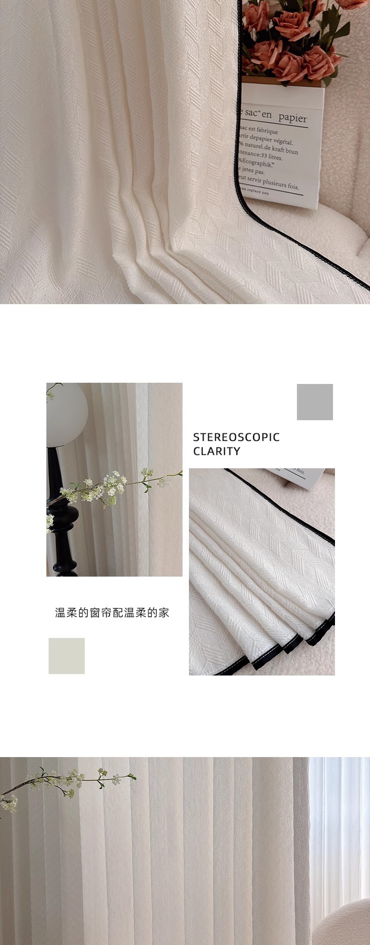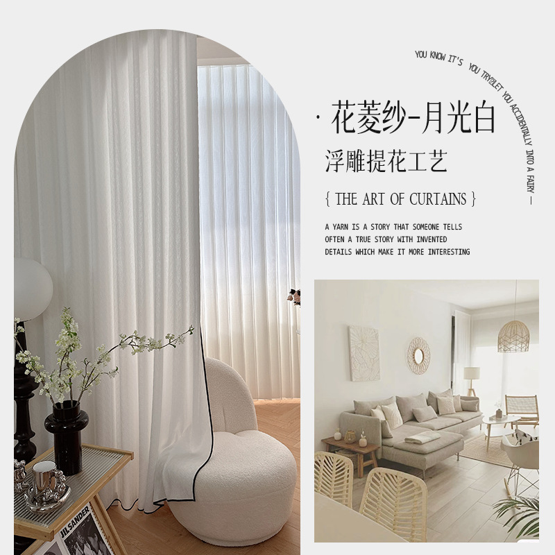 Hualing Yarn French 새로운 엠보싱 자카드 소프트 크림 투명 투과성 음영 솔리드 컬러 창 화면 거실 거즈 커튼