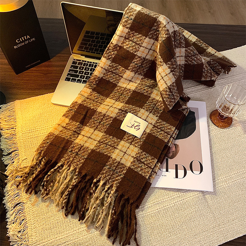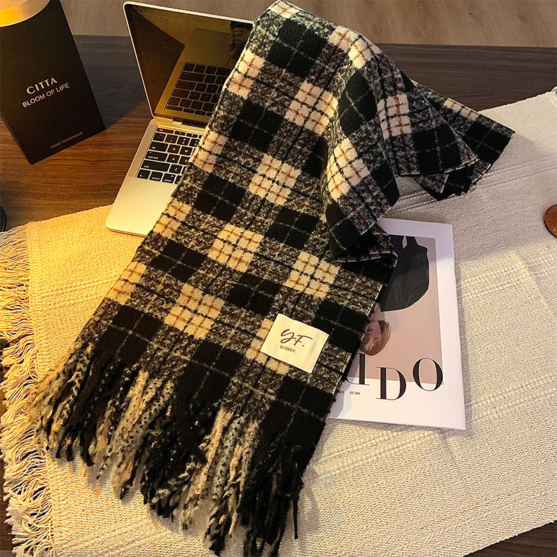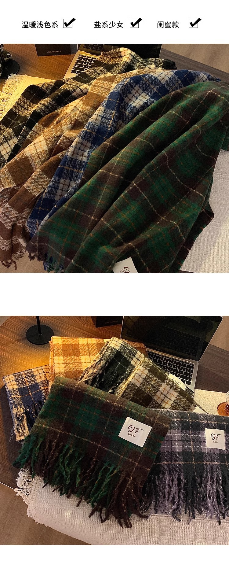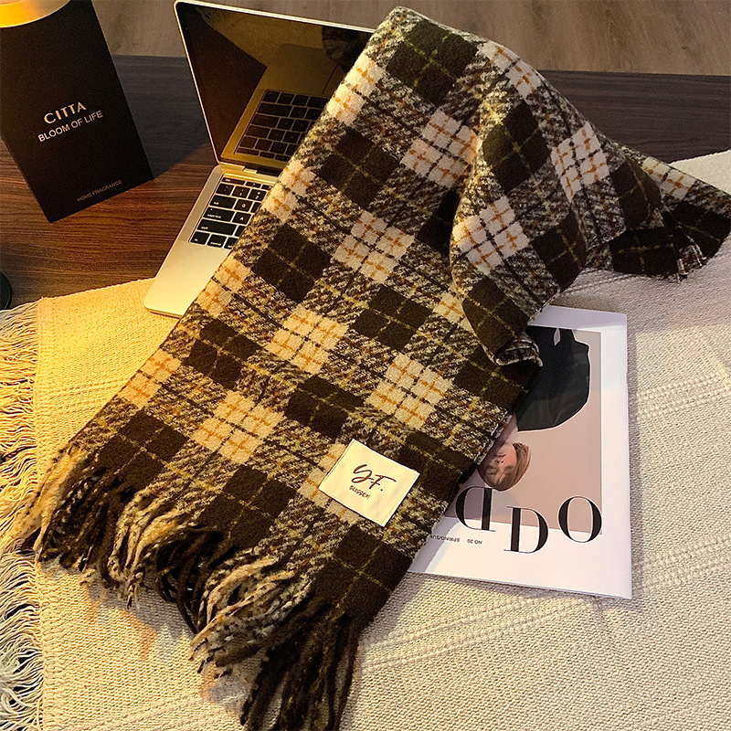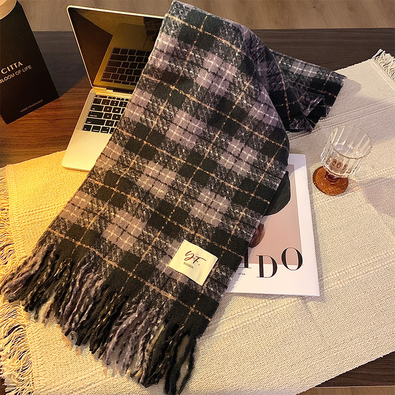 녹색 격자 무늬 니트 스카프 여성의 가을과 겨울 2024 새로운 한국 복고풍 두꺼운 따뜻한 분위기 스카프스토어 가기