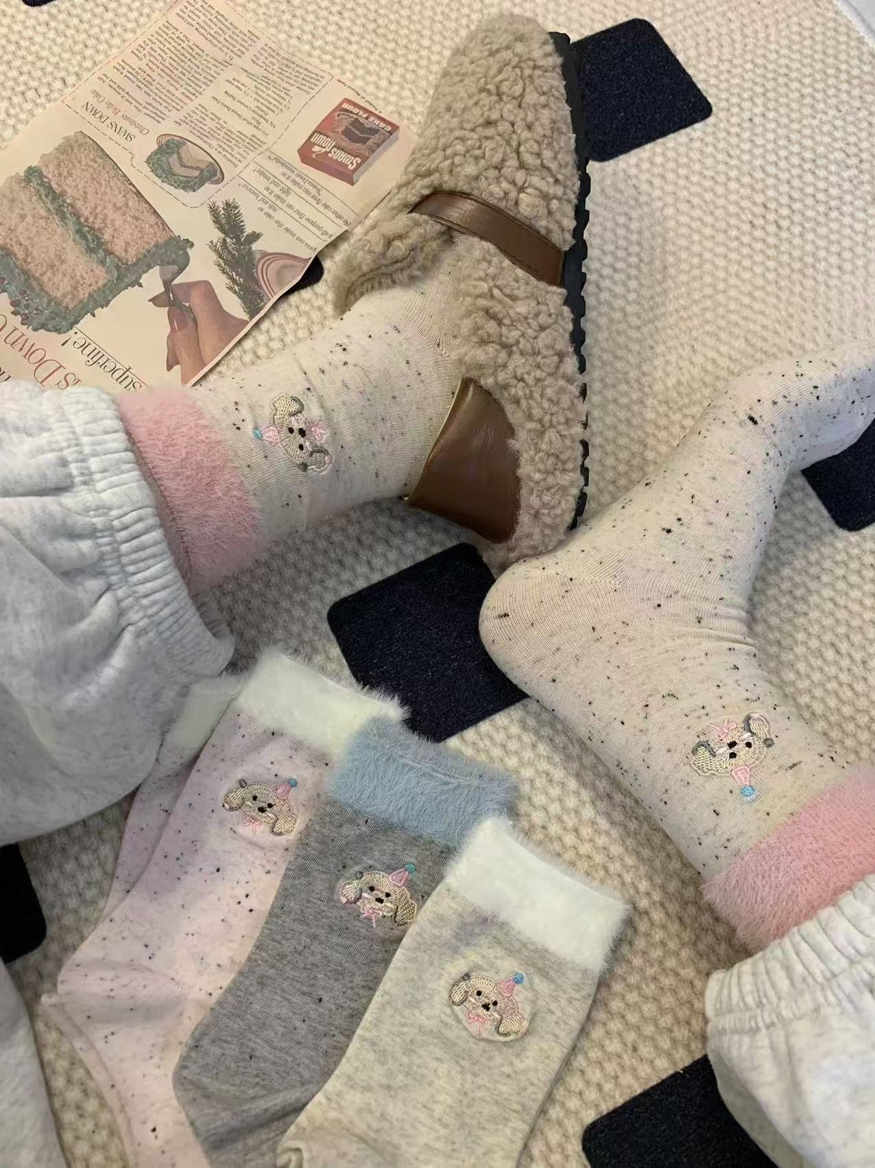 양말 여성의 가을 새 강아지 몰려 양말 여성 컬러 매칭 달콤한 만화 귀여운 한국 미드 튜브 양말 면 양말스토어 가기