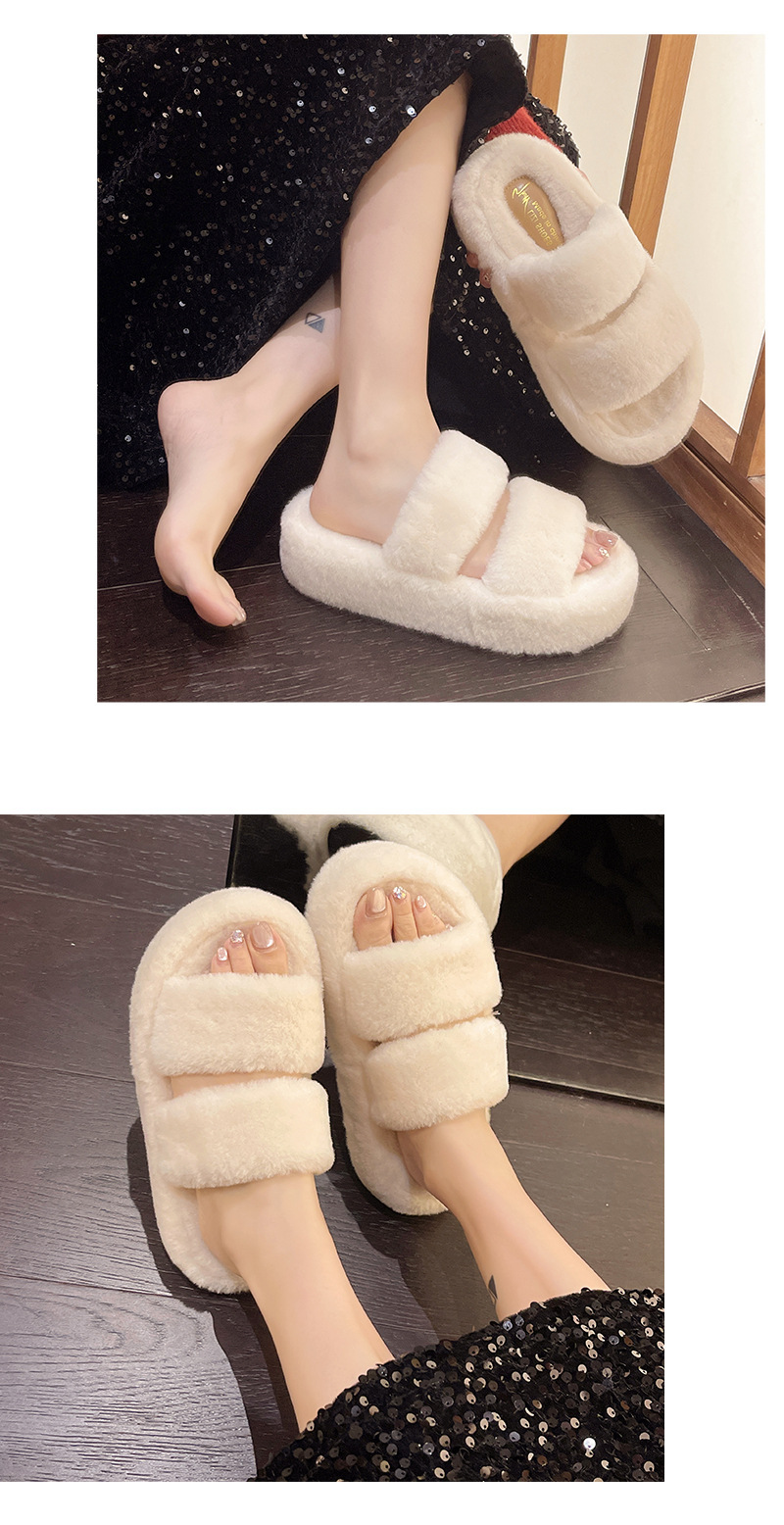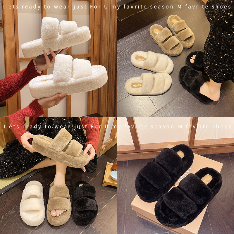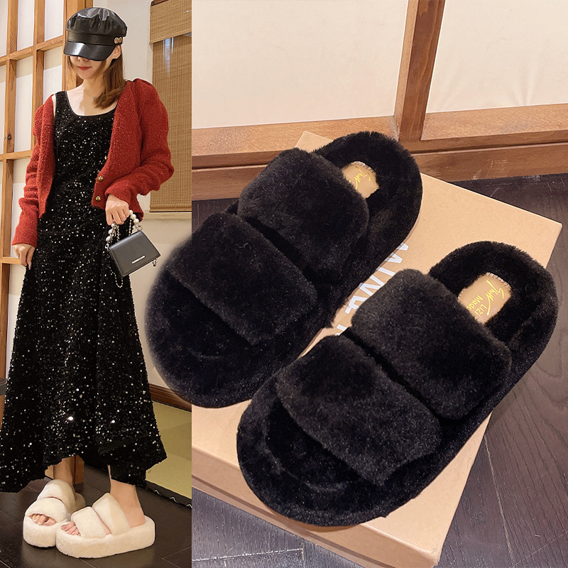 두꺼운 밑창 푹신한 슬리퍼 여성의 가을과 겨울 2024 새로운 패션 인터넷 인기있는 한 단어 면 슬리퍼 플러시 하이힐 푹신한 신발스토어 가기
