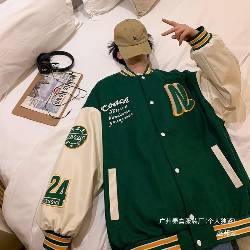 재킷 올 매치 아메리칸 스타일 느슨한 남자 패션 브랜드 새로운 캐주얼 레트로 야구 세트 재킷 커플의 봄과 가을스토어 가기