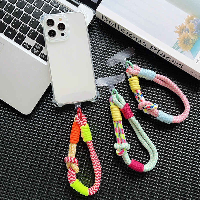 휴대 전화 끈 도파민 컬러 카메라 키 체인 손실 방지 손목 밴드 로프 워터 컵 가방 짠 짧은 끈