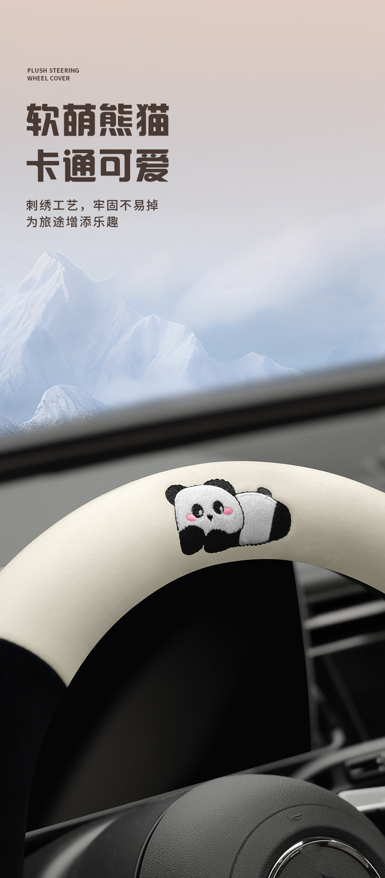 자동차 스티어링 휠 커버 가을과 겨울 특별 만화 귀여운 귀여운 팬더 따뜻한 봉제 마모 방지 미끄럼 방지 자동차 핸들 커버