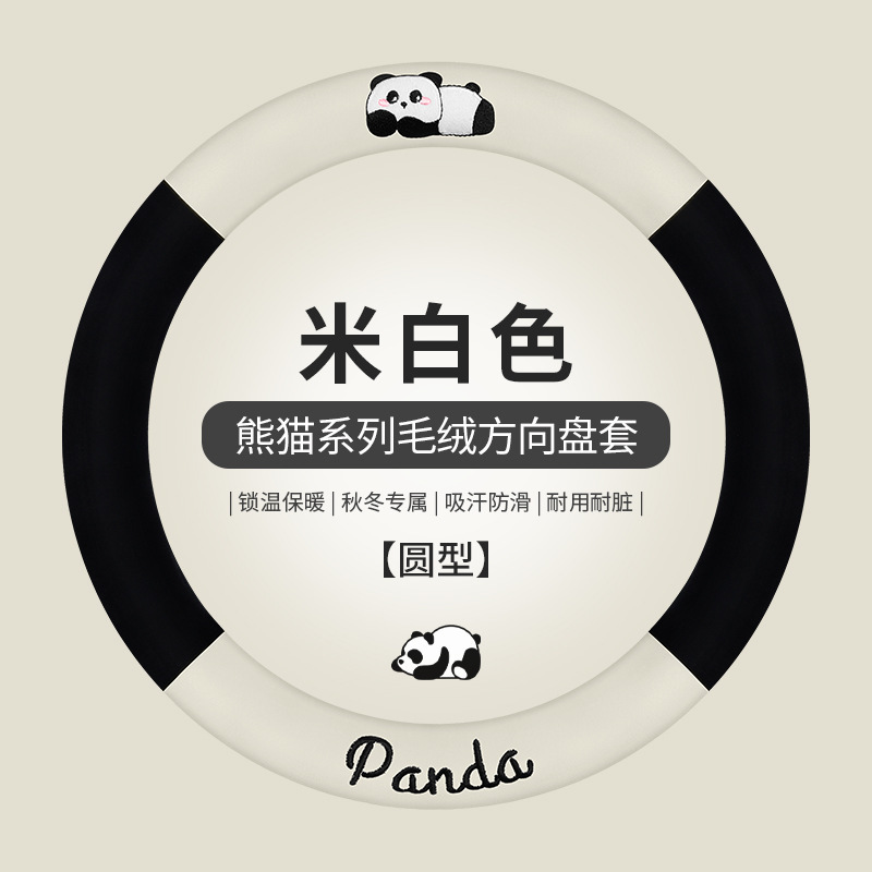 자동차 스티어링 휠 커버 가을과 겨울 특별 만화 귀여운 귀여운 팬더 따뜻한 봉제 마모 방지 미끄럼 방지 자동차 핸들 커버스토어 가기