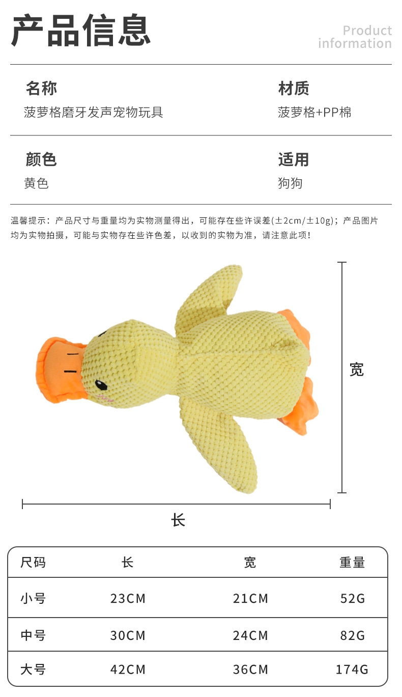 개 장난감 파인애플 그리드 플러시 잠자는 오리 중소형 개 젖니가 남 지루함을 완화하고 소리를 내는 작은 노란색 오리 애완 동물 베개스토어 가기