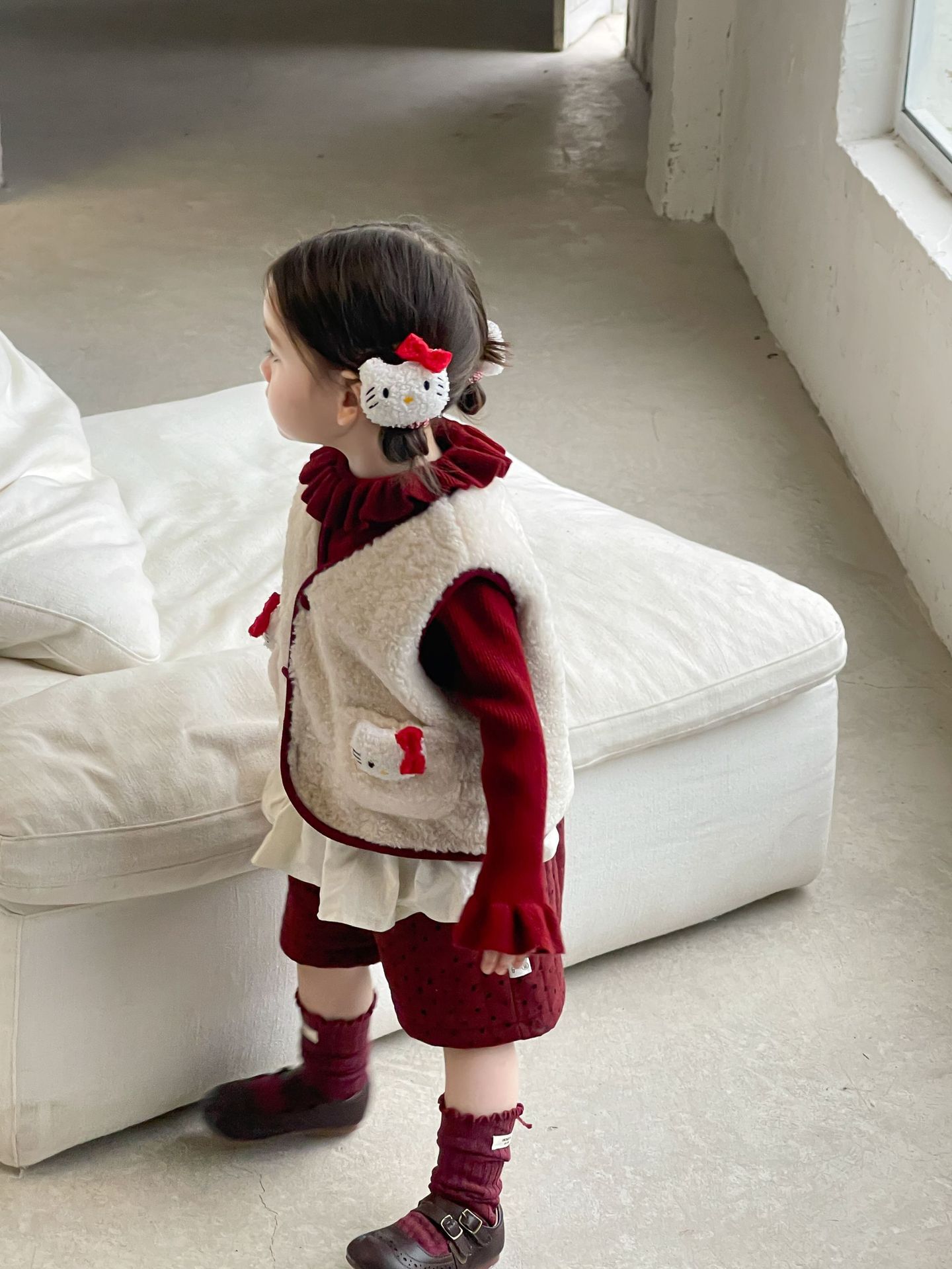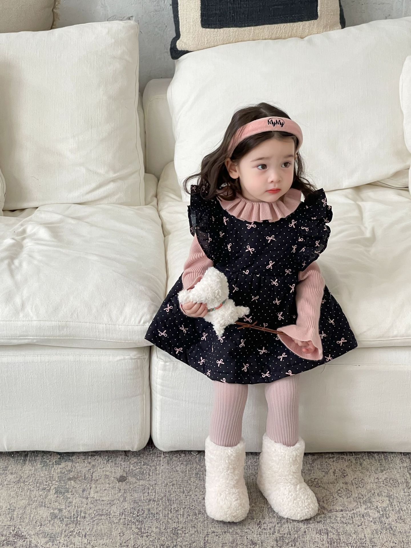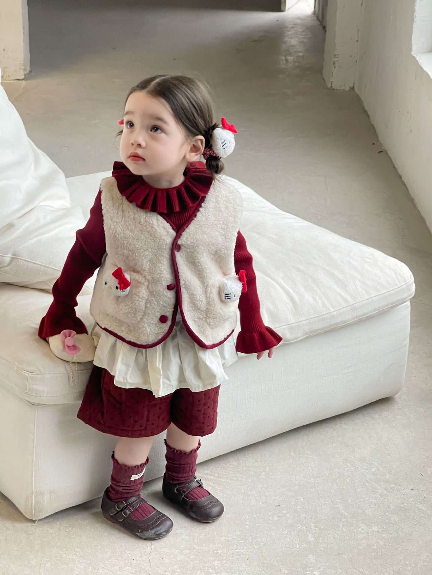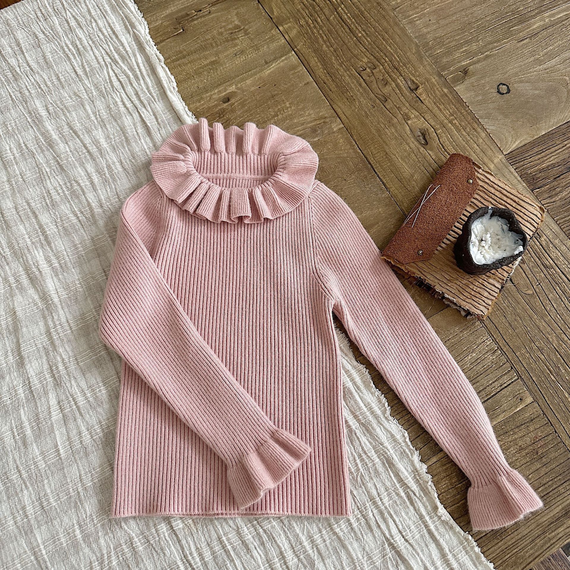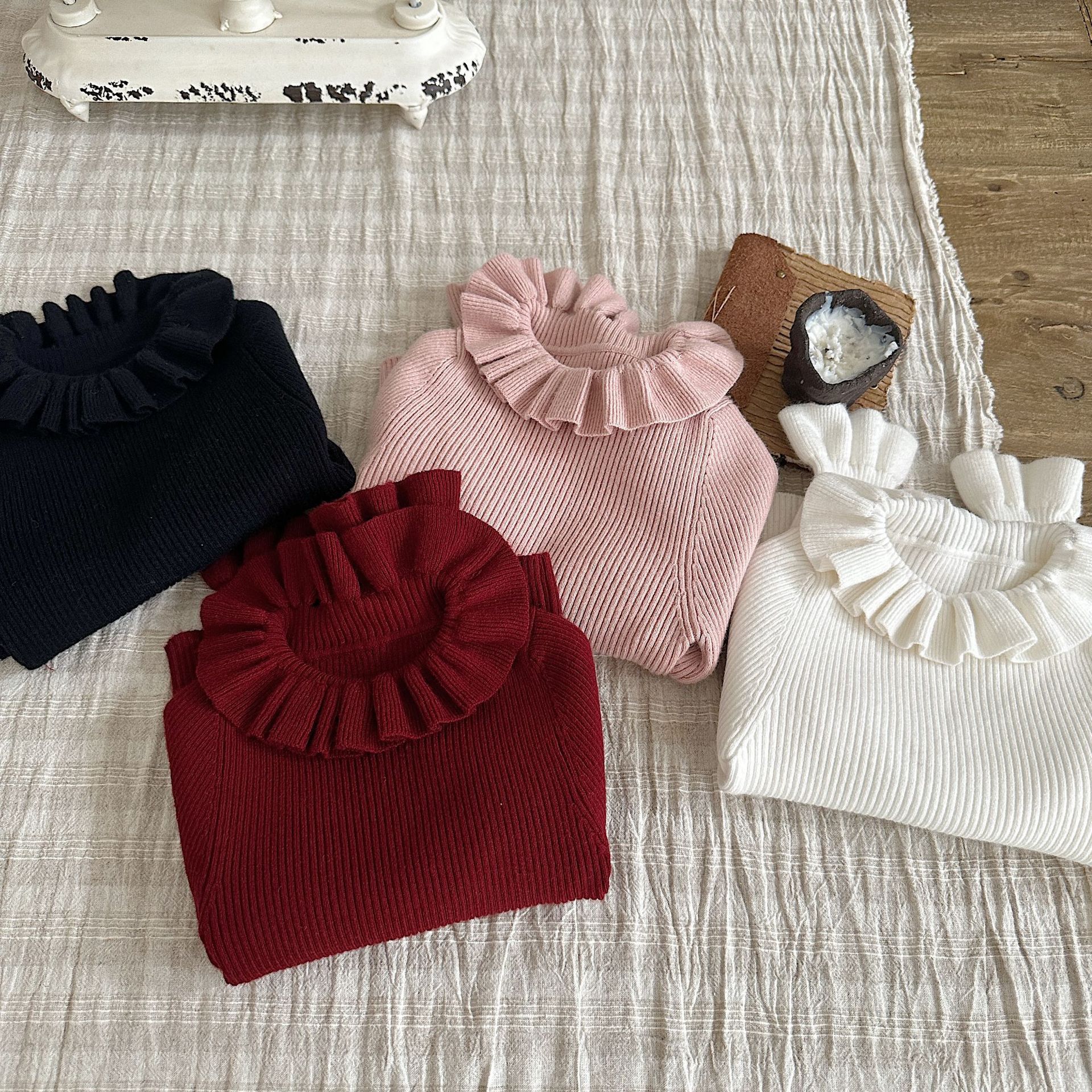 버우드 아동복 소녀베이스 스웨터 2024 가을과 겨울 새로운 어린이 레이스 칼라 니트 탑 아기 소녀 옷스토어 가기