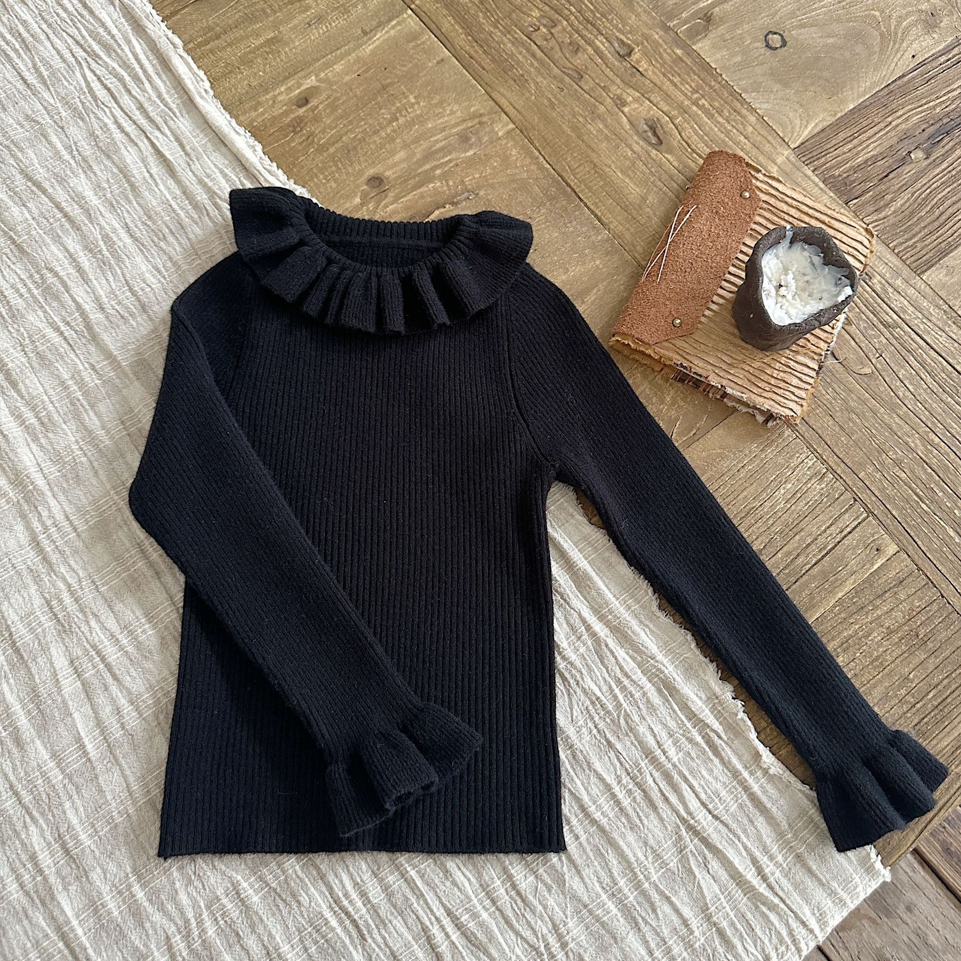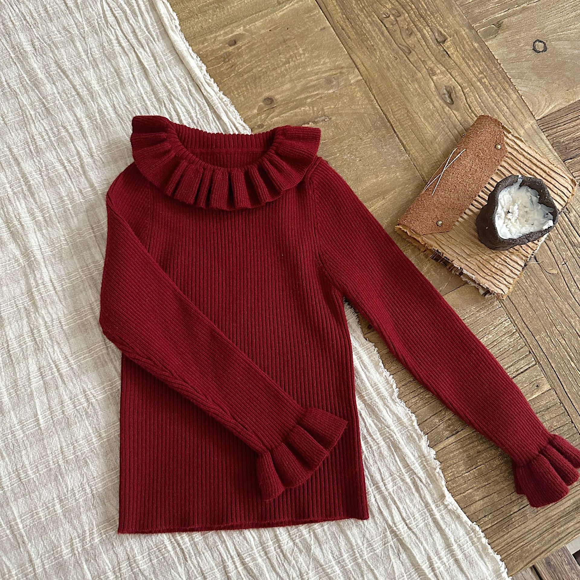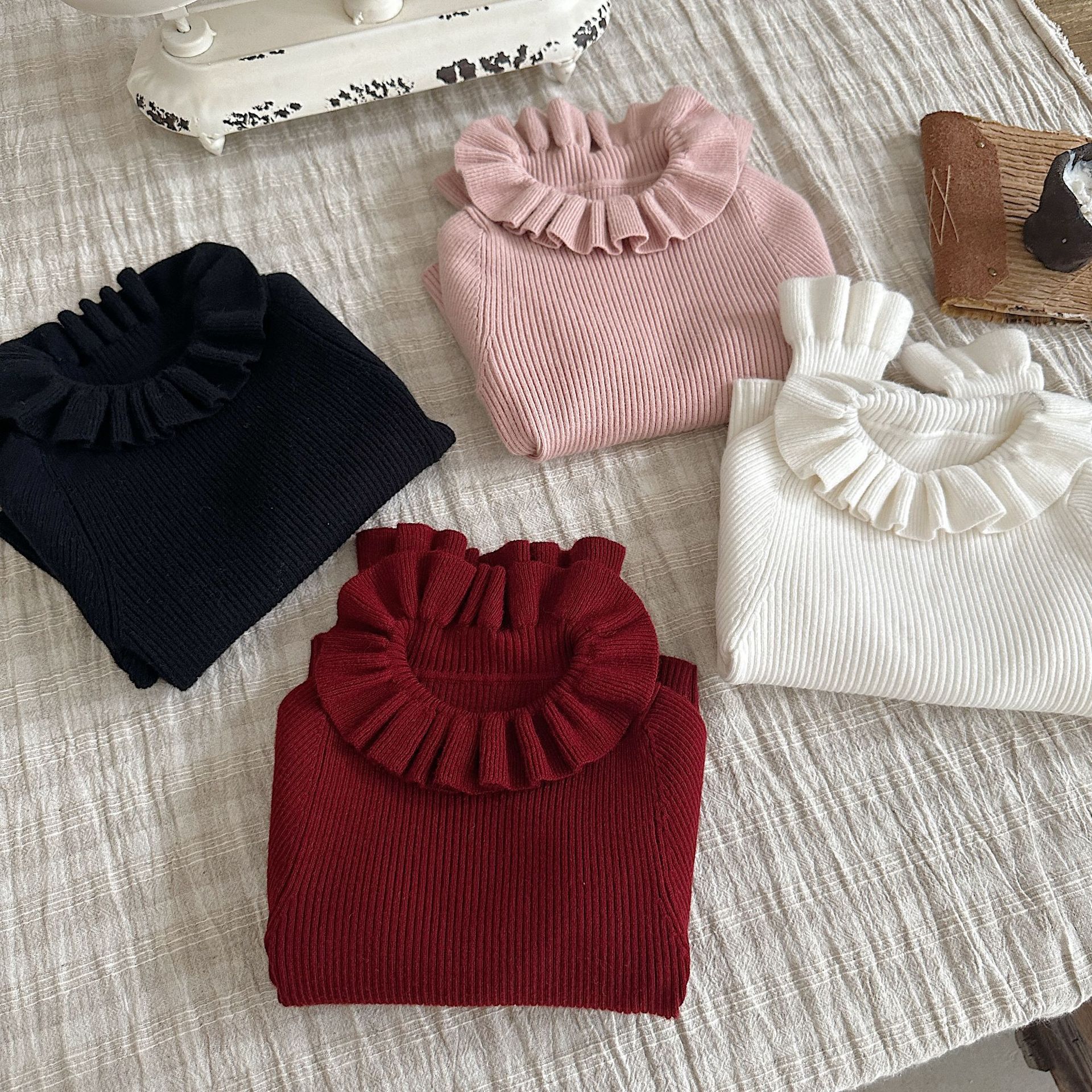 버우드 아동복 소녀베이스 스웨터 2024 가을과 겨울 새로운 어린이 레이스 칼라 니트 탑 아기 소녀 옷