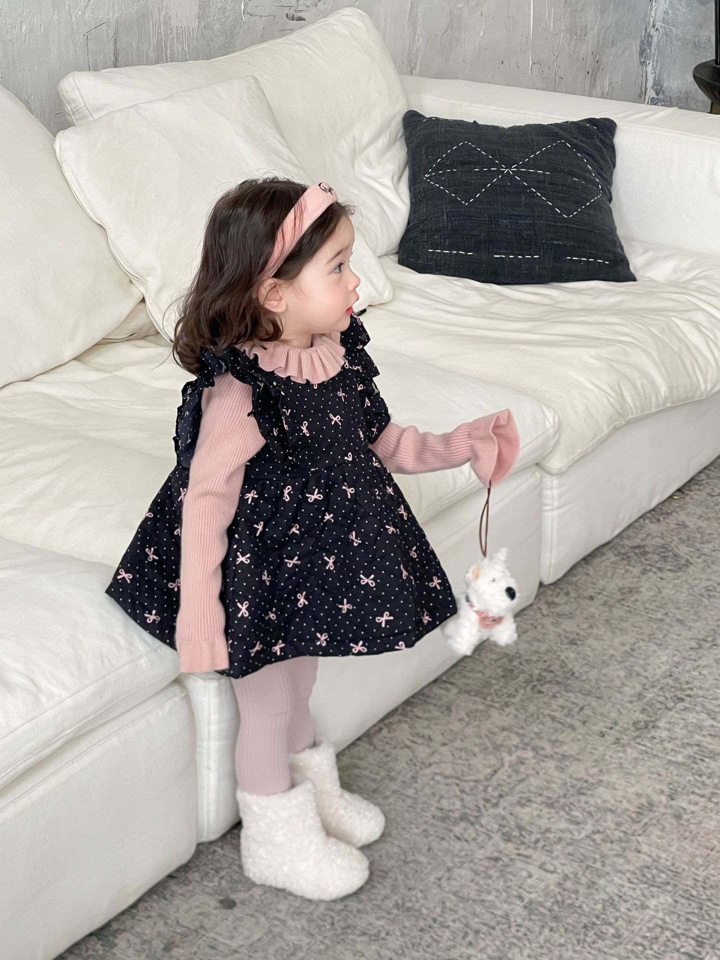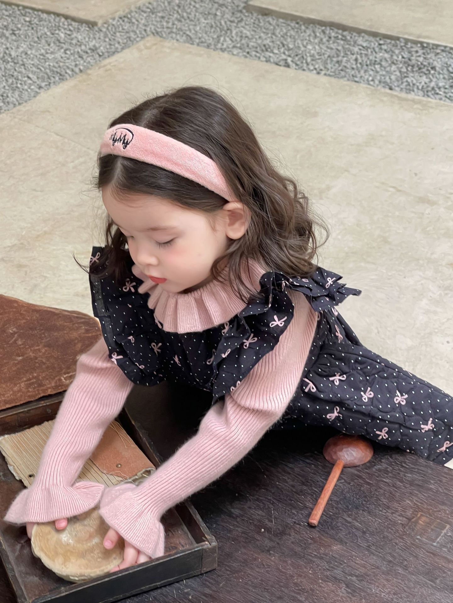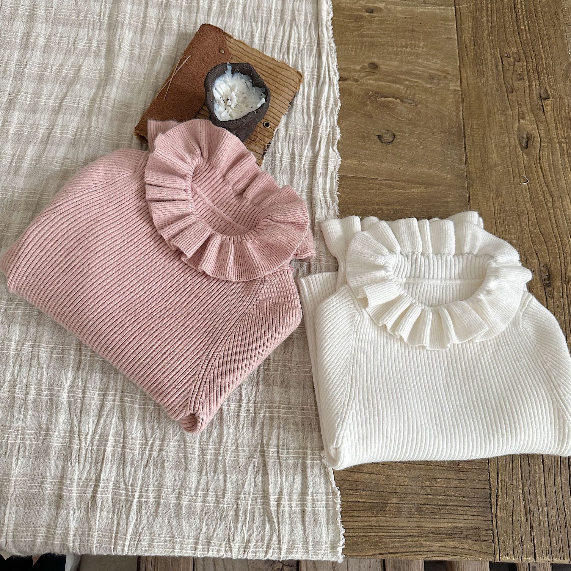 버우드 아동복 소녀베이스 스웨터 2024 가을과 겨울 새로운 어린이 레이스 칼라 니트 탑 아기 소녀 옷