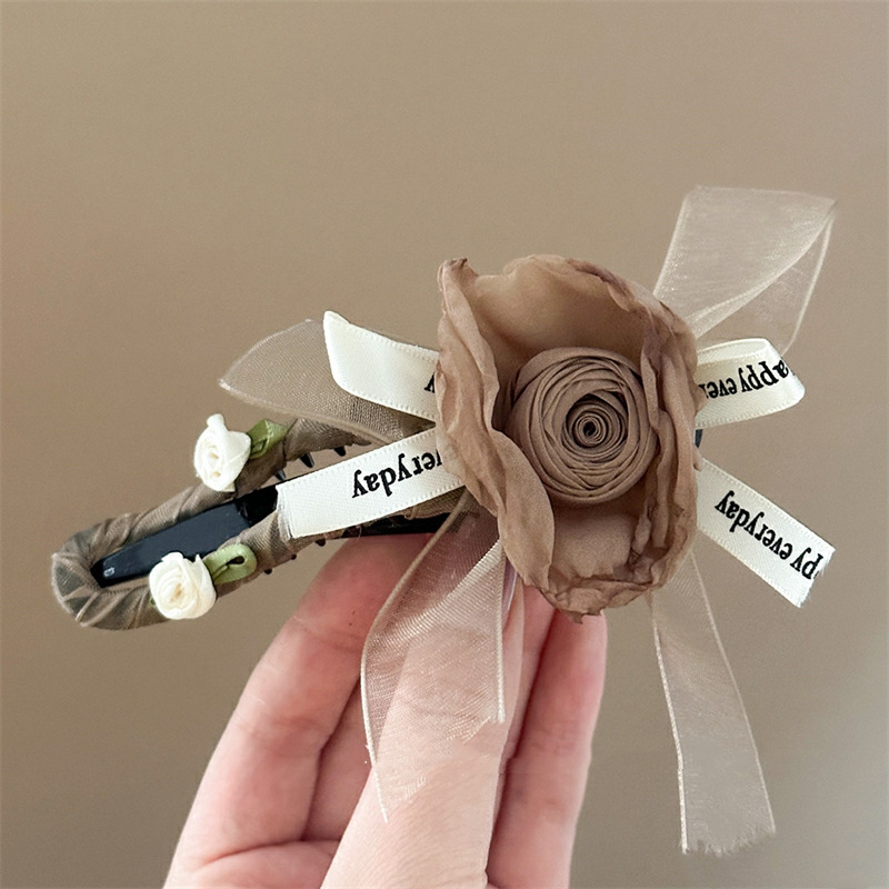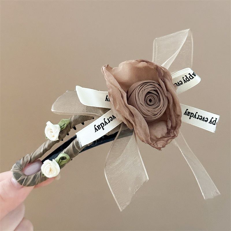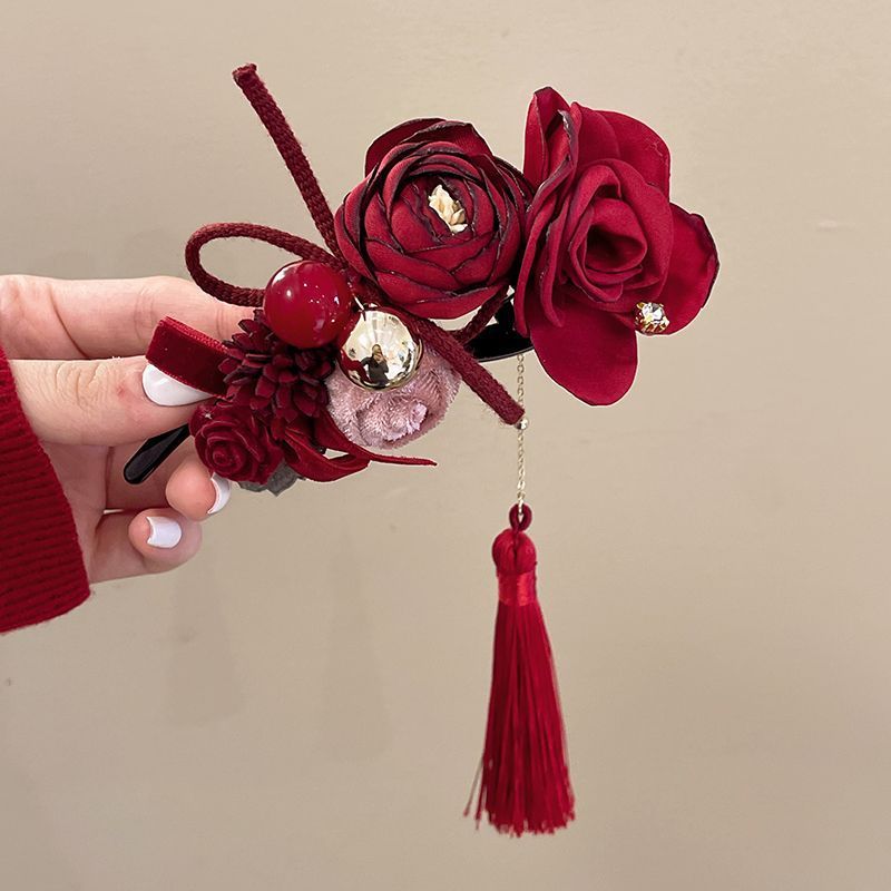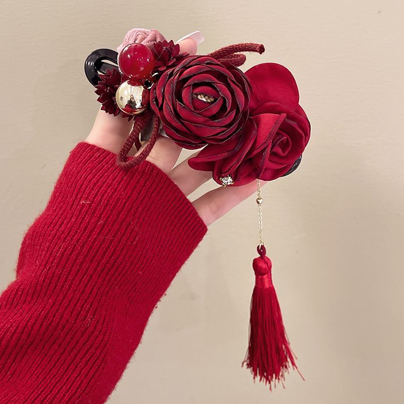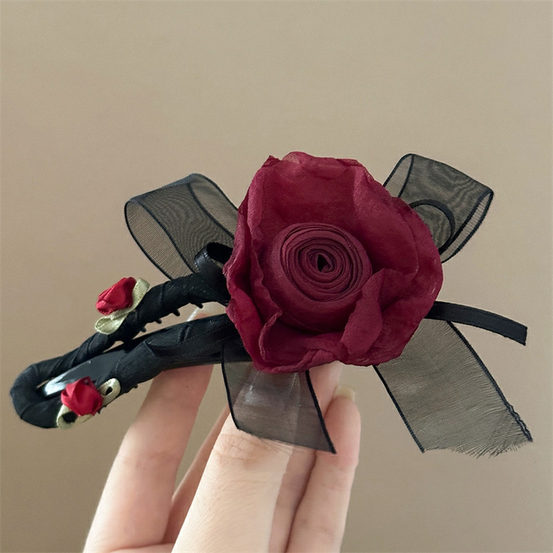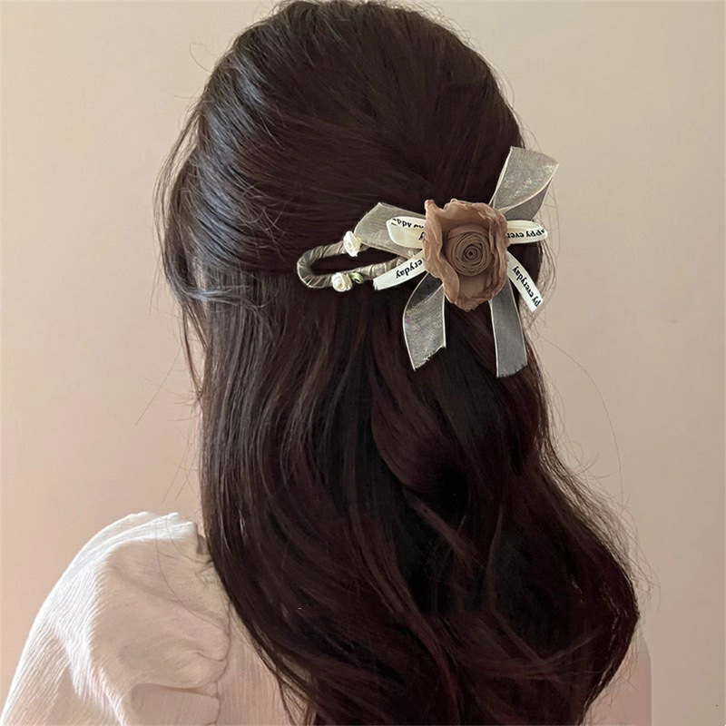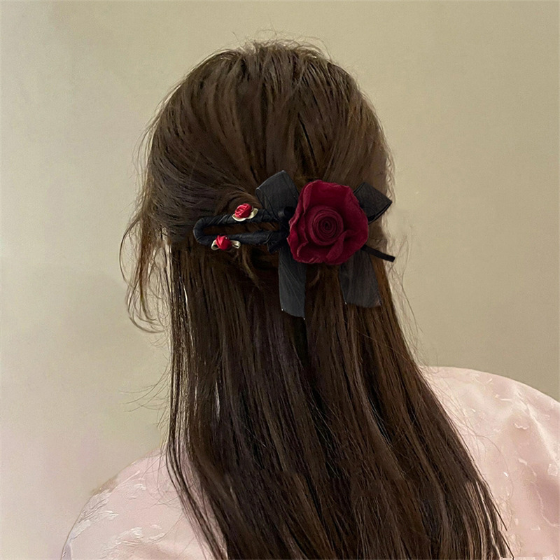 Maillard 스타일 드라이 로즈 헤어 클립 새로운 중국 스타일 헤드 클립 여성용 고급 하프 헤어 헤어 플라워 헤드웨어