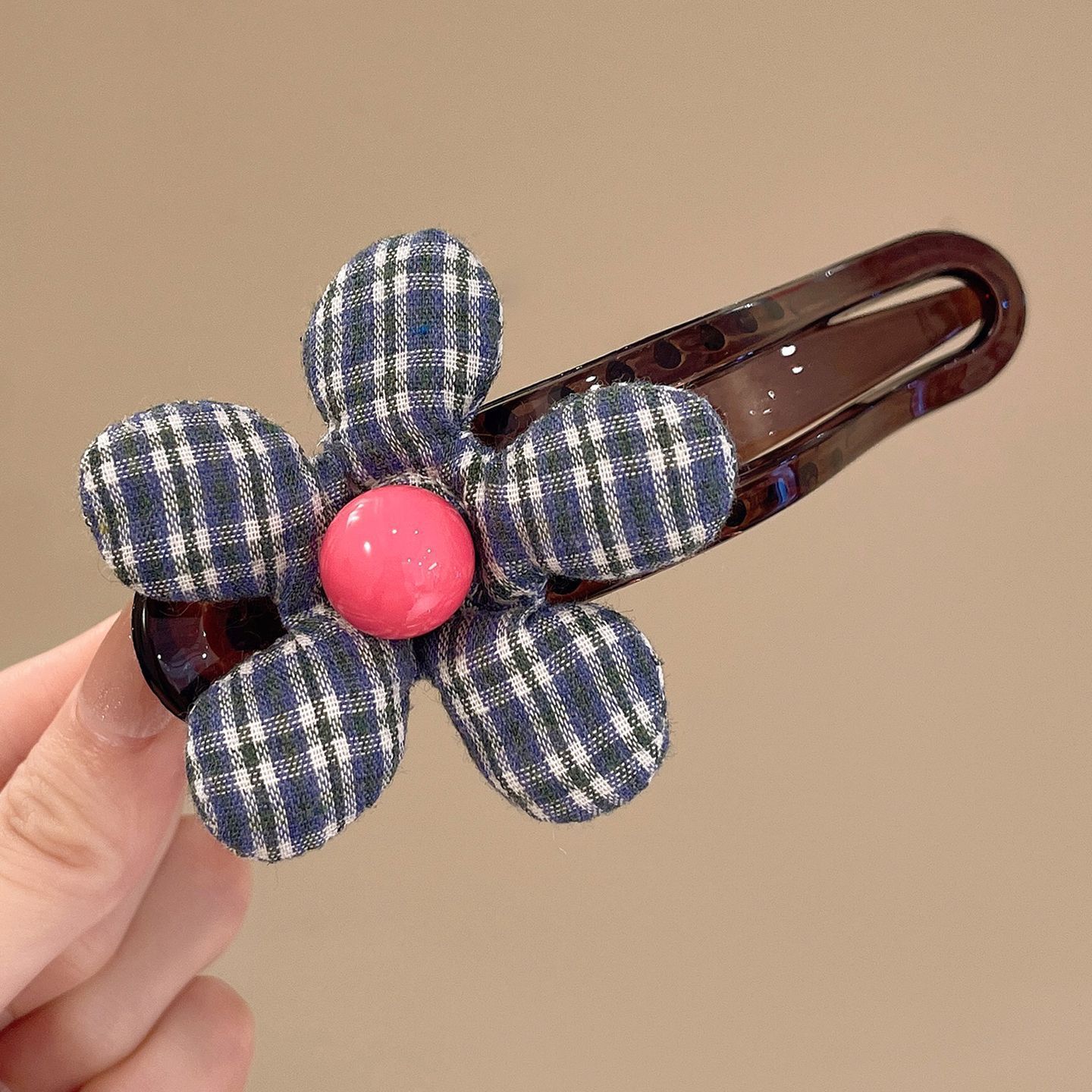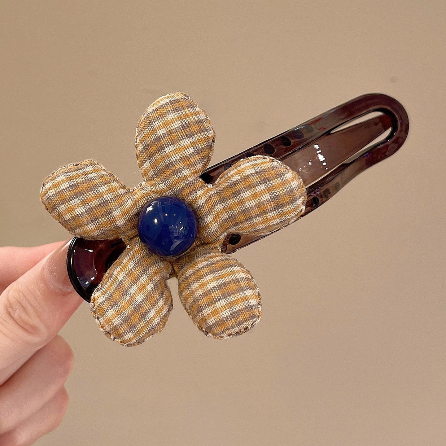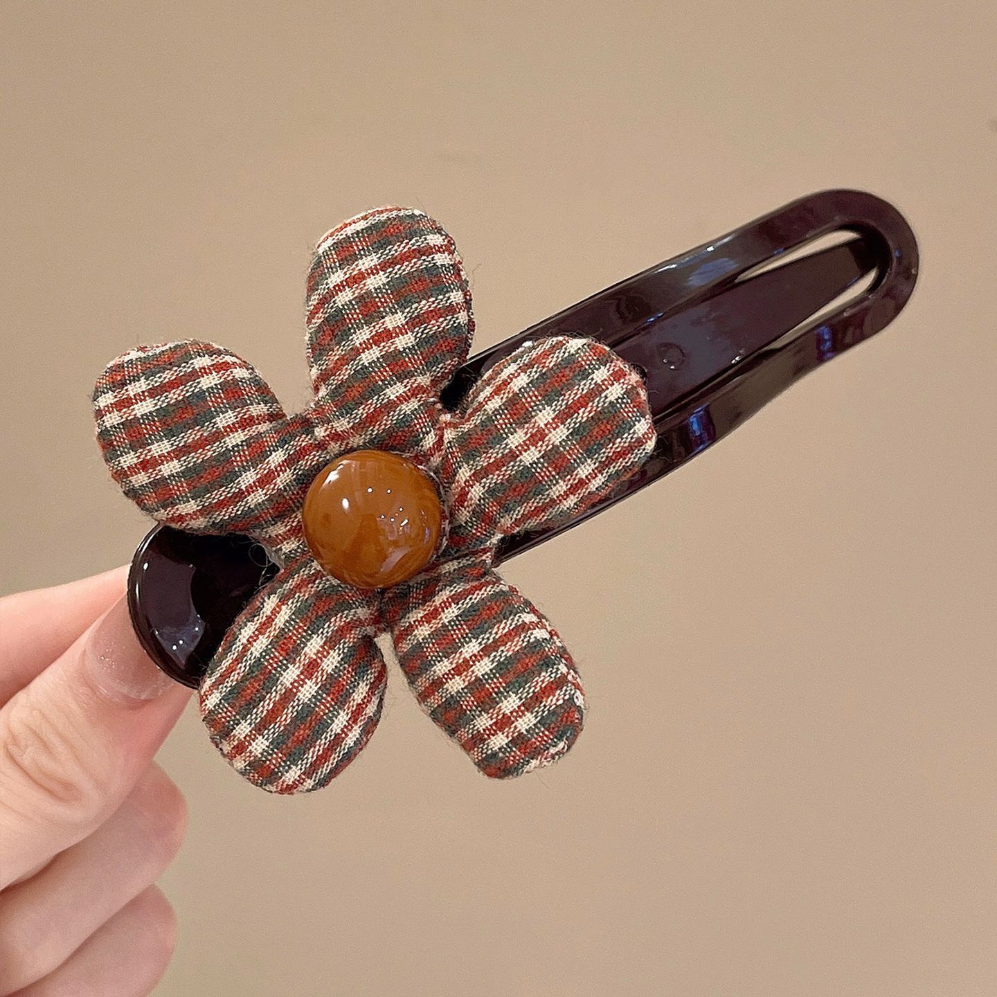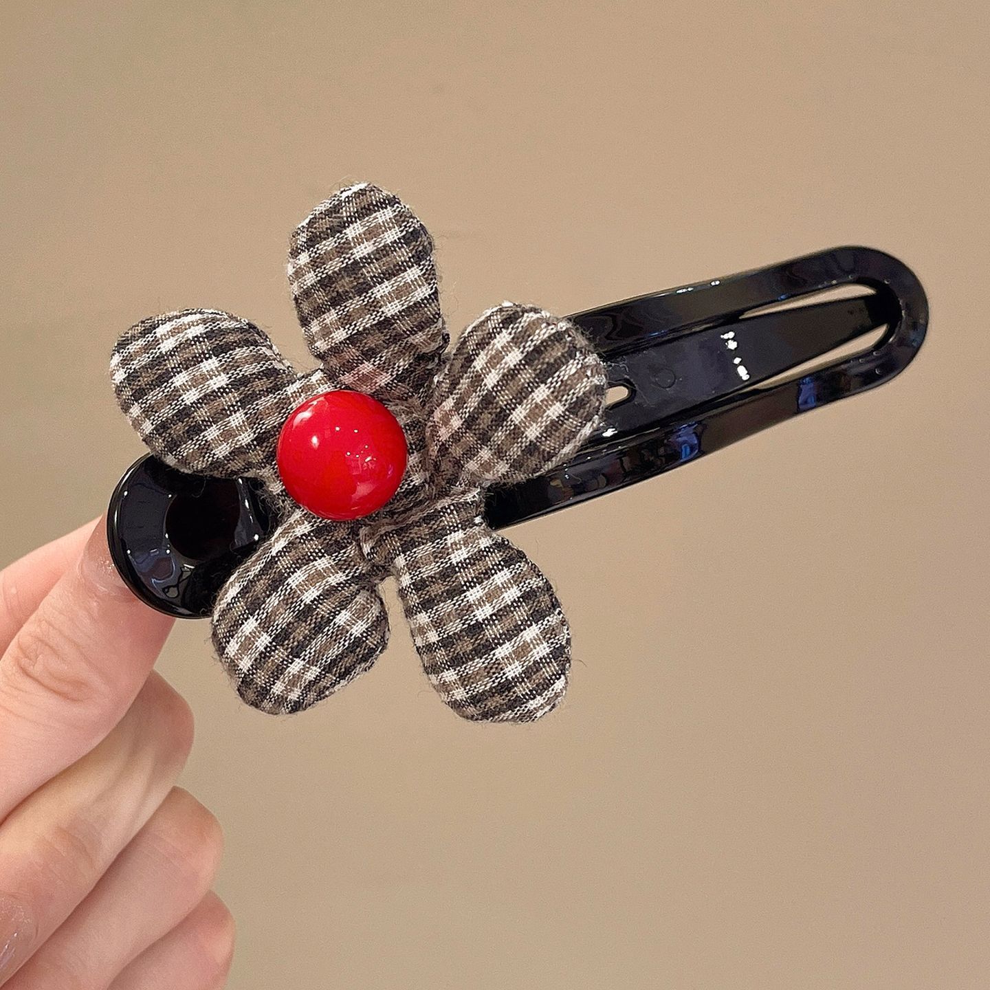 • 브라운 체크 무늬 덕빌 클립