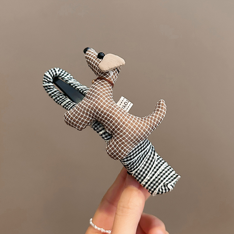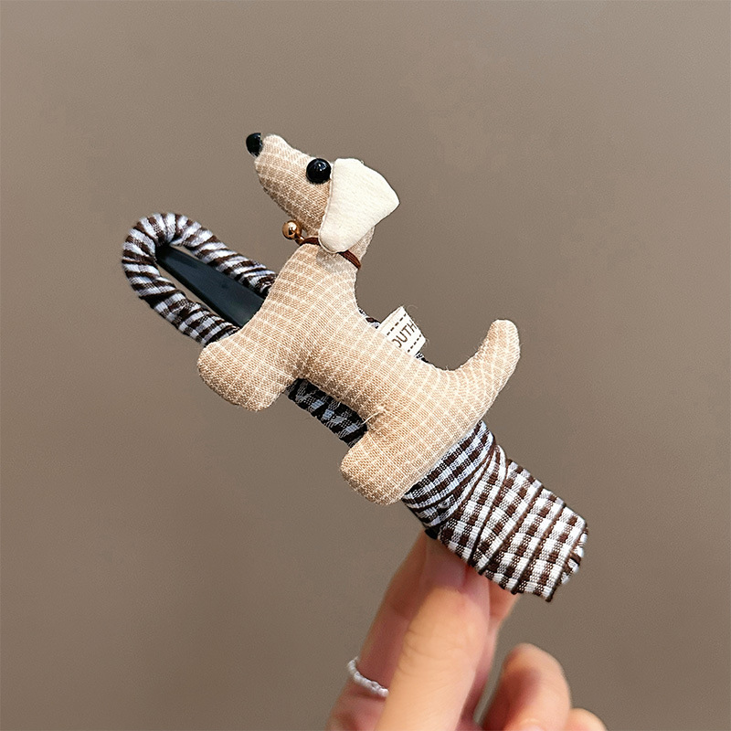 • 갈색 격자 무늬 강아지 덕빌 클립