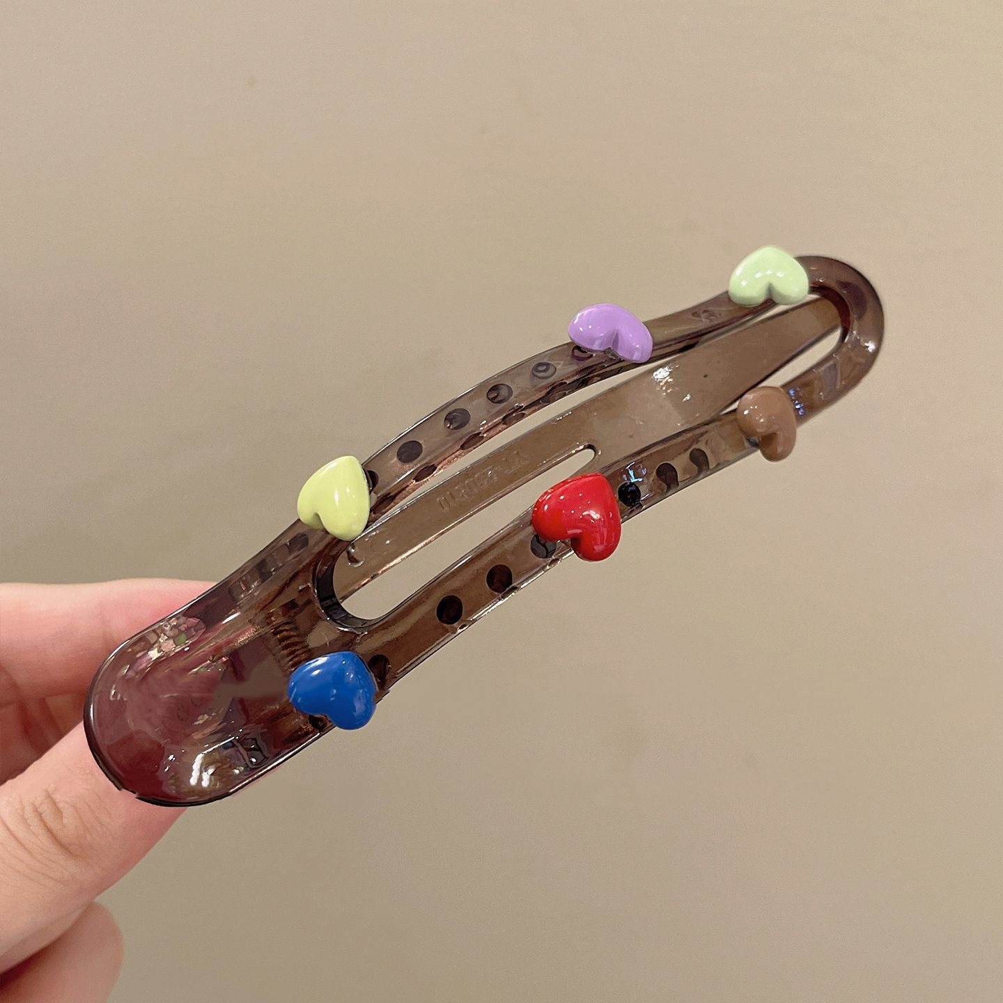 • 카라멜 컬러 하트 오리부리 클립