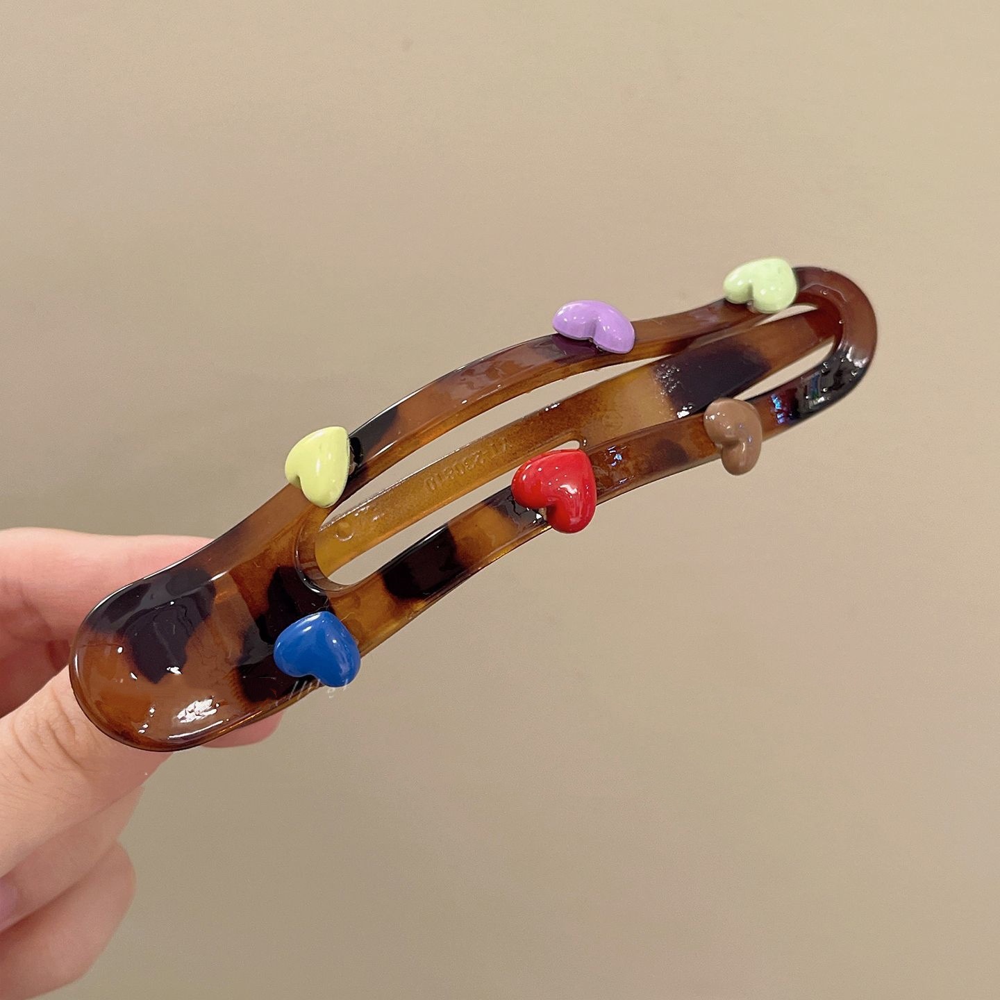 • 레오파드 컬러 하트 오리부리핀