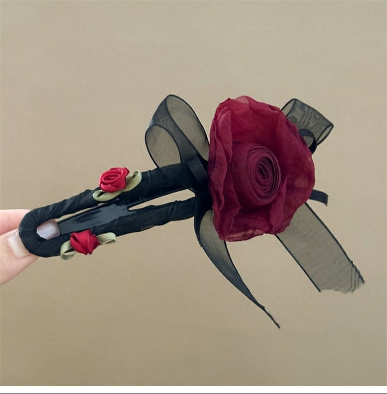 • 빨간 장미 꼬임 머리핀