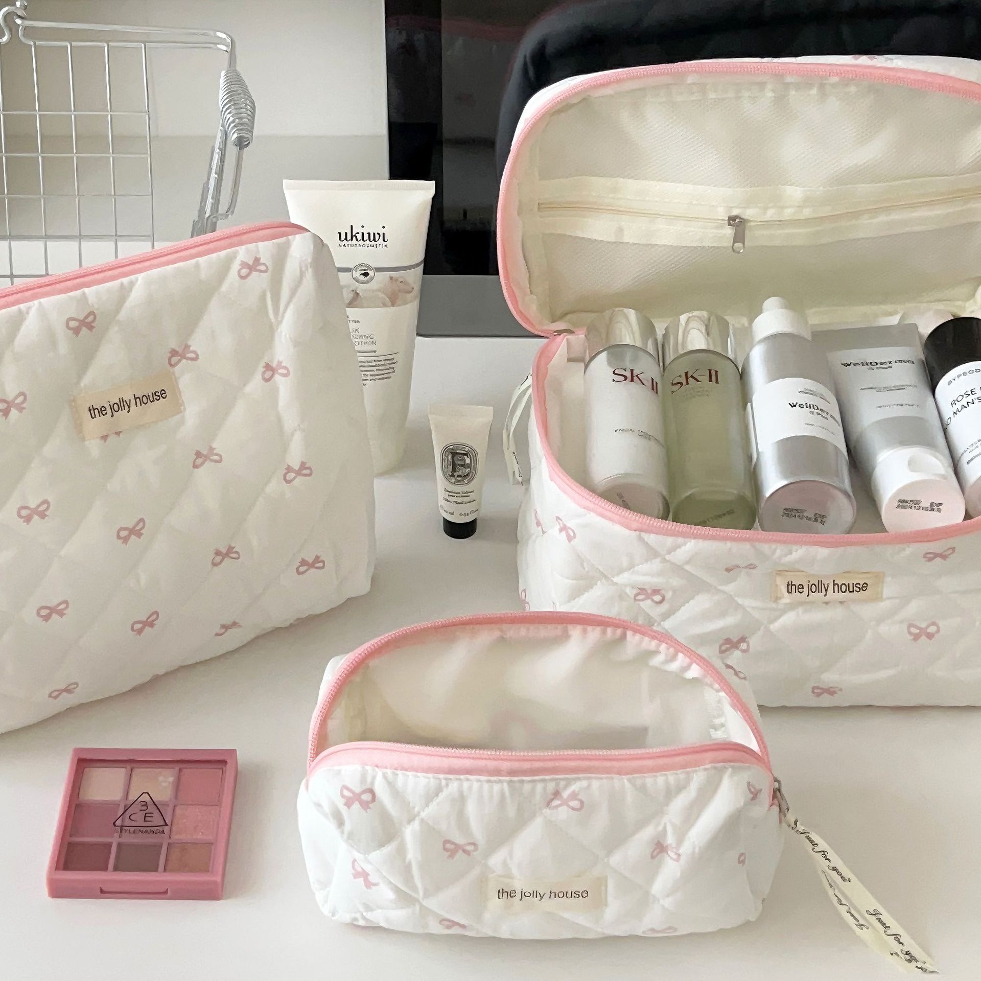 높은 가치의 활 메이크업 가방 여성 소녀의 심장 휴대용 대용량 여행 화장품 세척 보관 가방