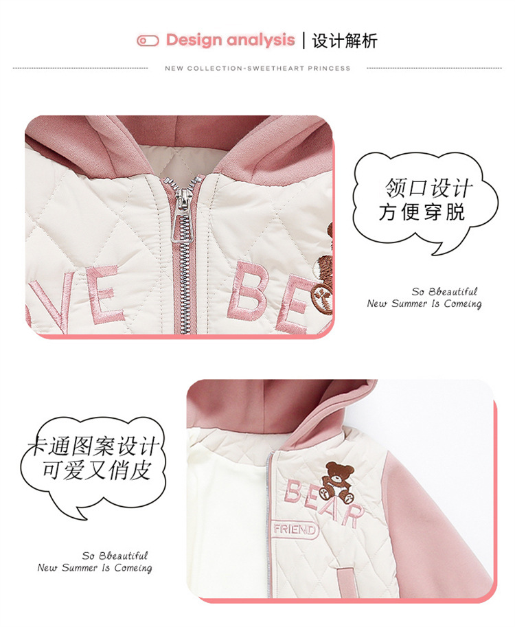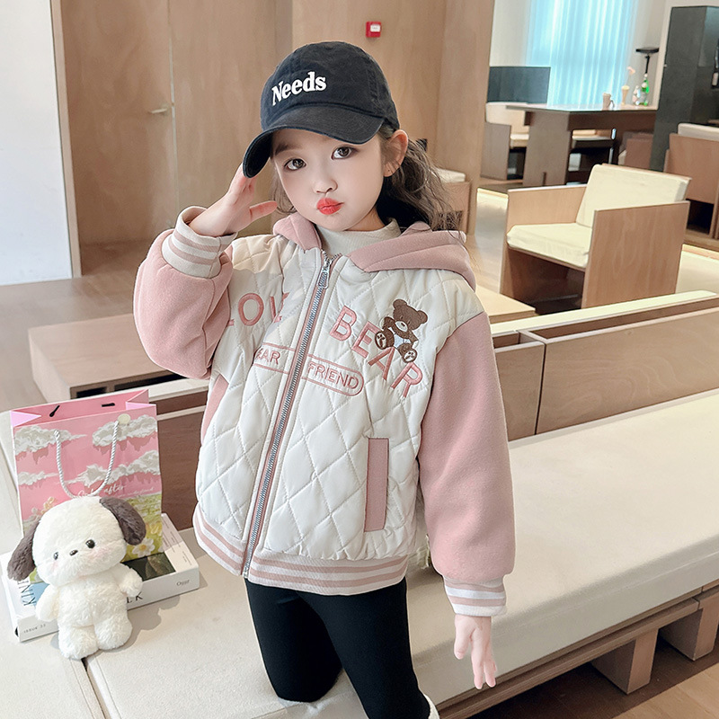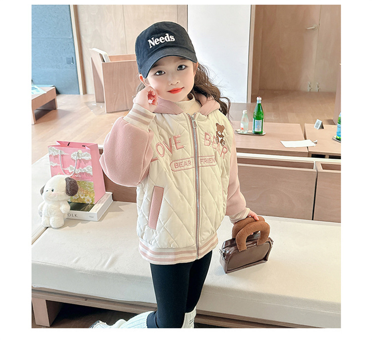 여자 곰 퀼트 면 야구 세트 어린이 늦은 가을과 겨울 2024 새로운 스타일 소녀 스타일라인 코트 아동복 트렌디스토어 가기